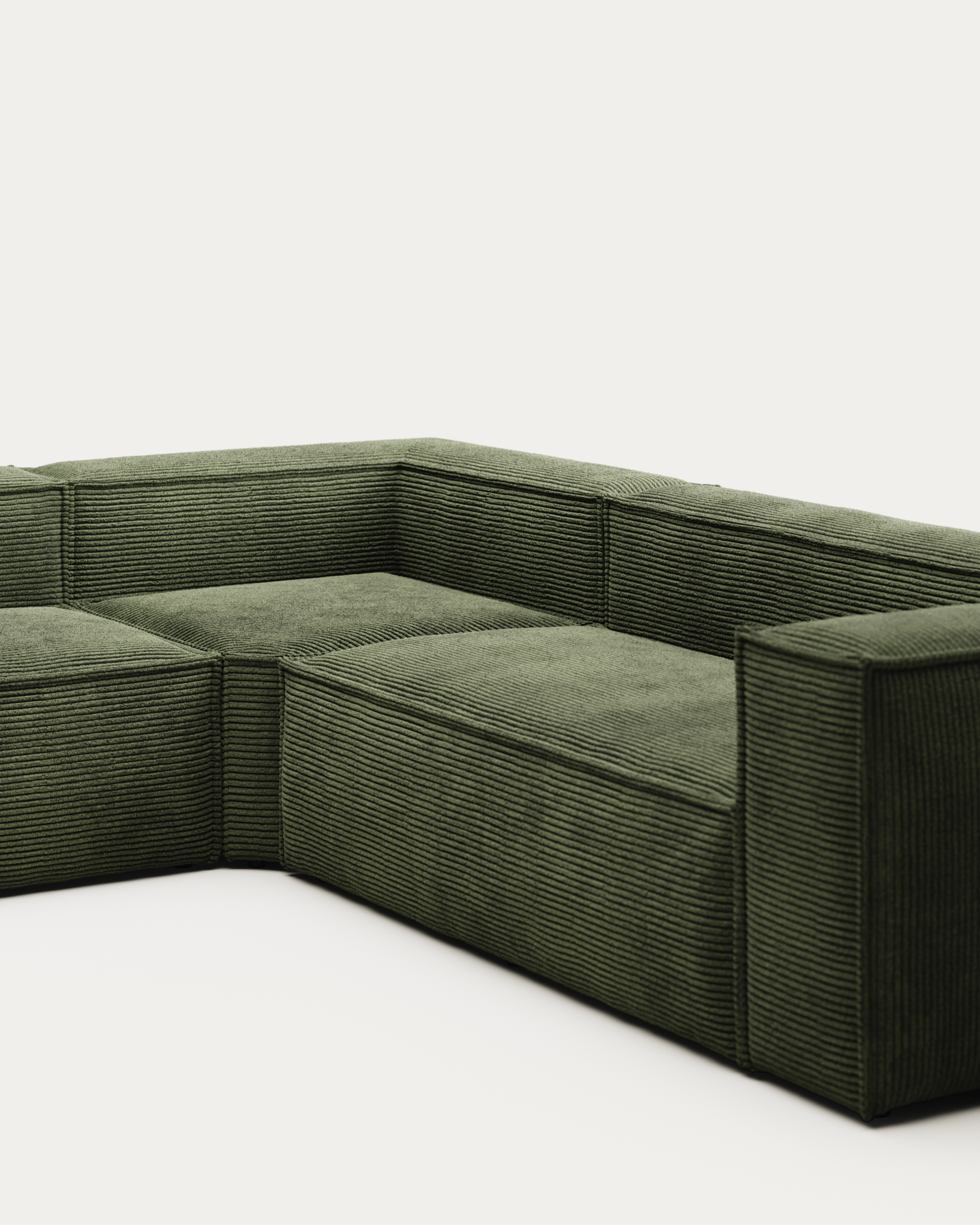 Blok zöld vastag kordbársony sarokkanapé, 5-ülős, 320 x 290cm/290 x 320cm FSC Mix Credit