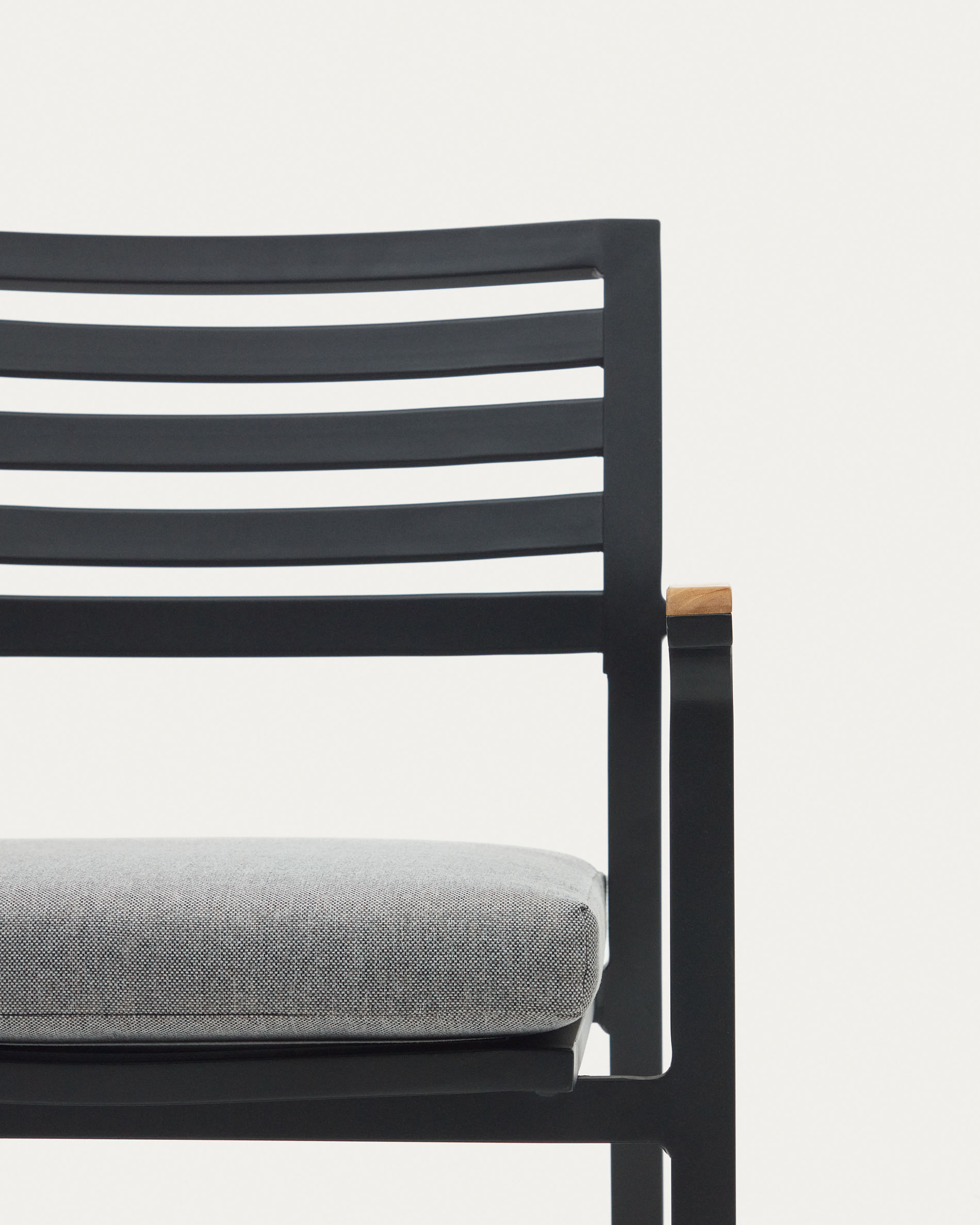 Bona rakásolható alumínium kerti szék fekete felülettel és tömör teakfa karfákkal