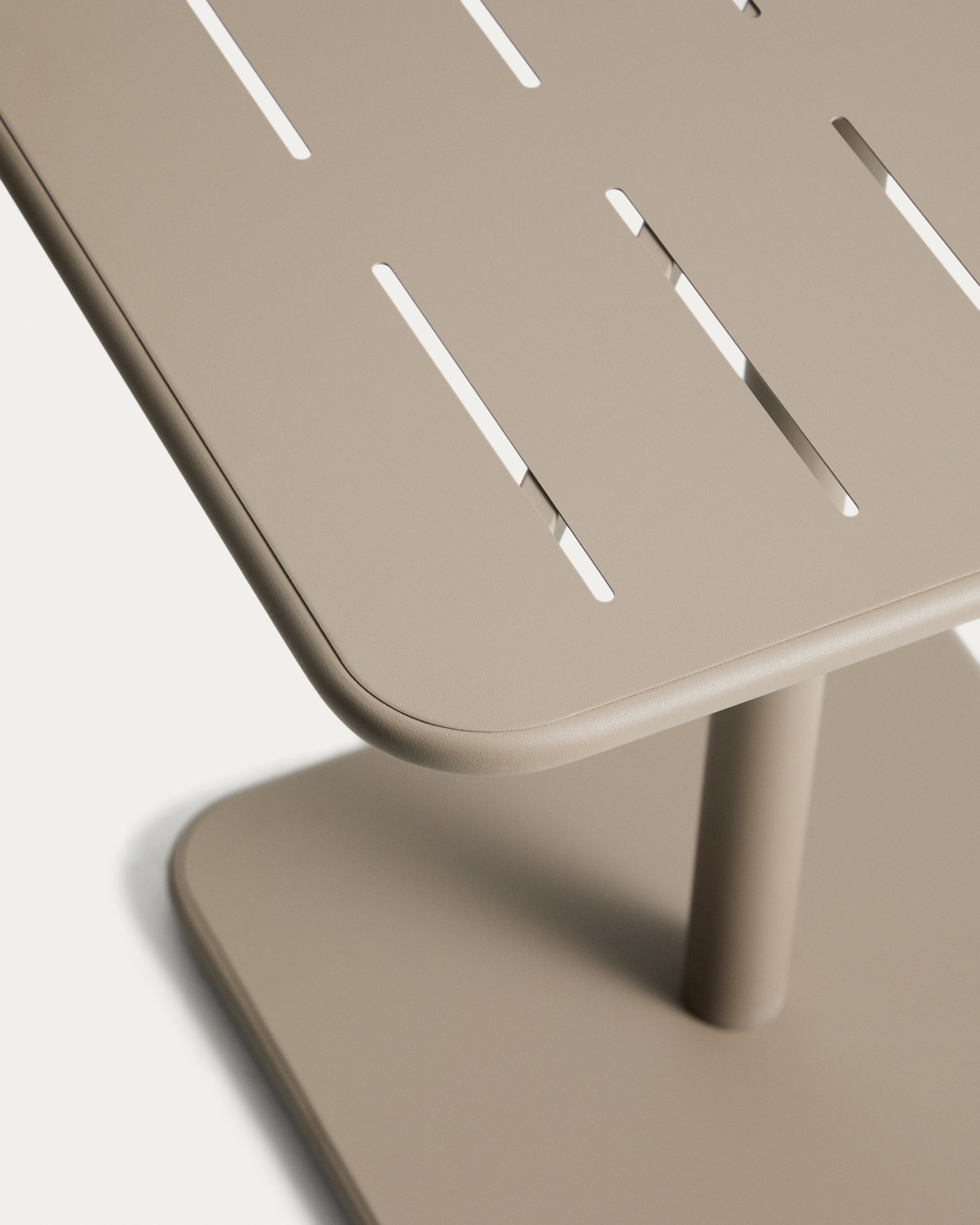 • Kültéri asztal galvanizált acélból, taupe színben. Cementtel megerősített alap a stabilitásért.