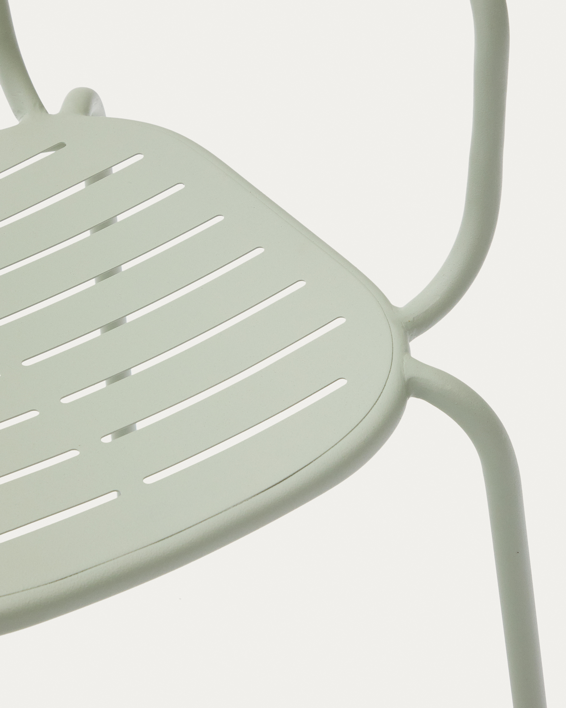 • Galvanizált acél karfás szék türkiz felülettel, ellenáll a rozsdának és korróziónak, tartósabb, mint a szokványos acél.