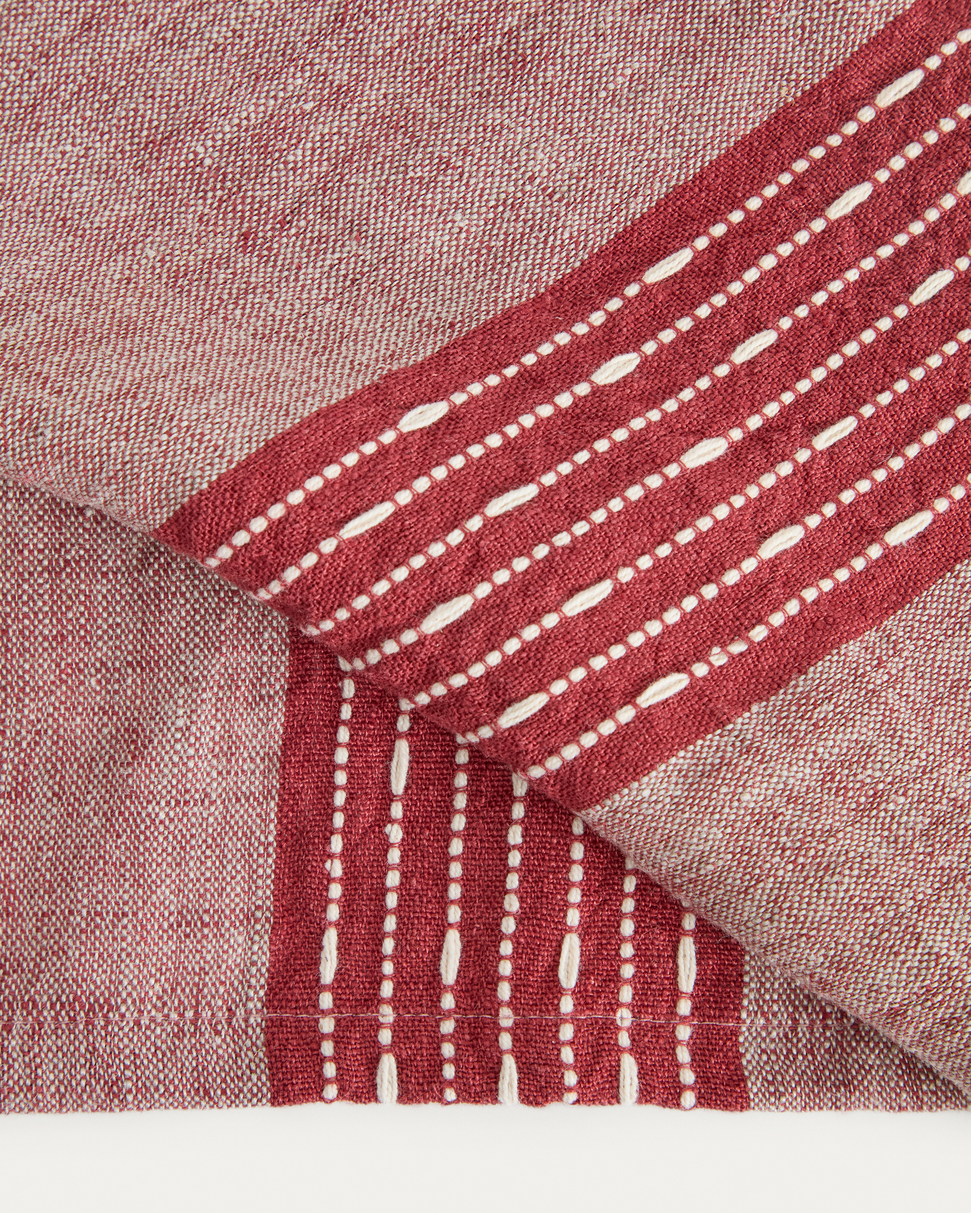 Egy időtlen eleganciával és kifogástalan kézműves munkával kiemelkedő len kollekció. A tervezés kontrasztos jacquard és középső csíkot tartalmaz, amelyek vizuális dinamizmust és kifinomultságot adnak az asztalnak. Minden asztali futó kézi szövésű, így minden darab egyedi, enyhe eltérésekkel. A len kellemes tapintást és természetes esést biztosít, friss és könnyű marad. Szilárdsága és tartóssága miatt ideális mindennapi használatra és különleges alkalmakra egyaránt.