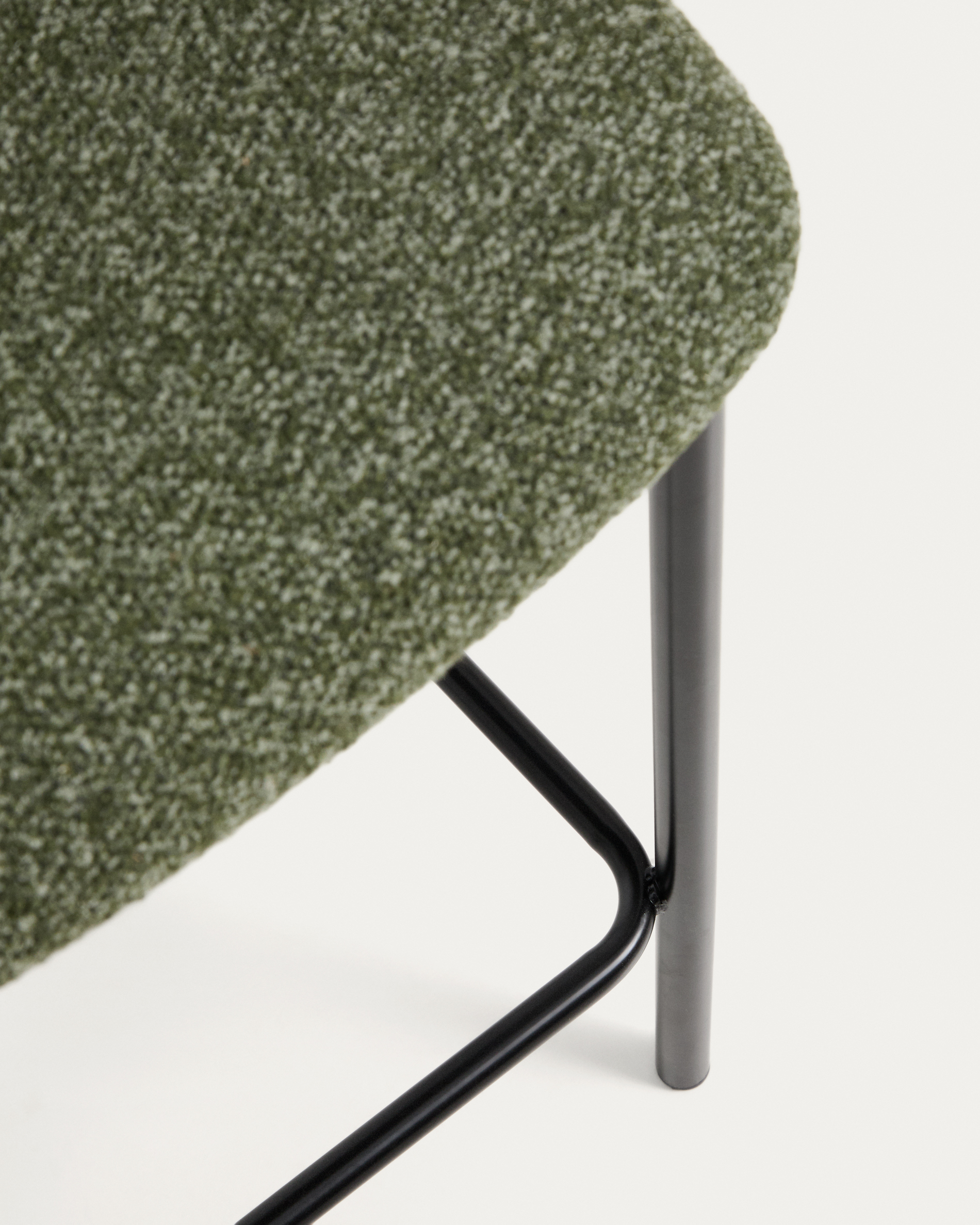 Ciselia sötétzöld vastag chenille bárszék fekete felületű acél lábakkal FSC Mix Credit 65cm