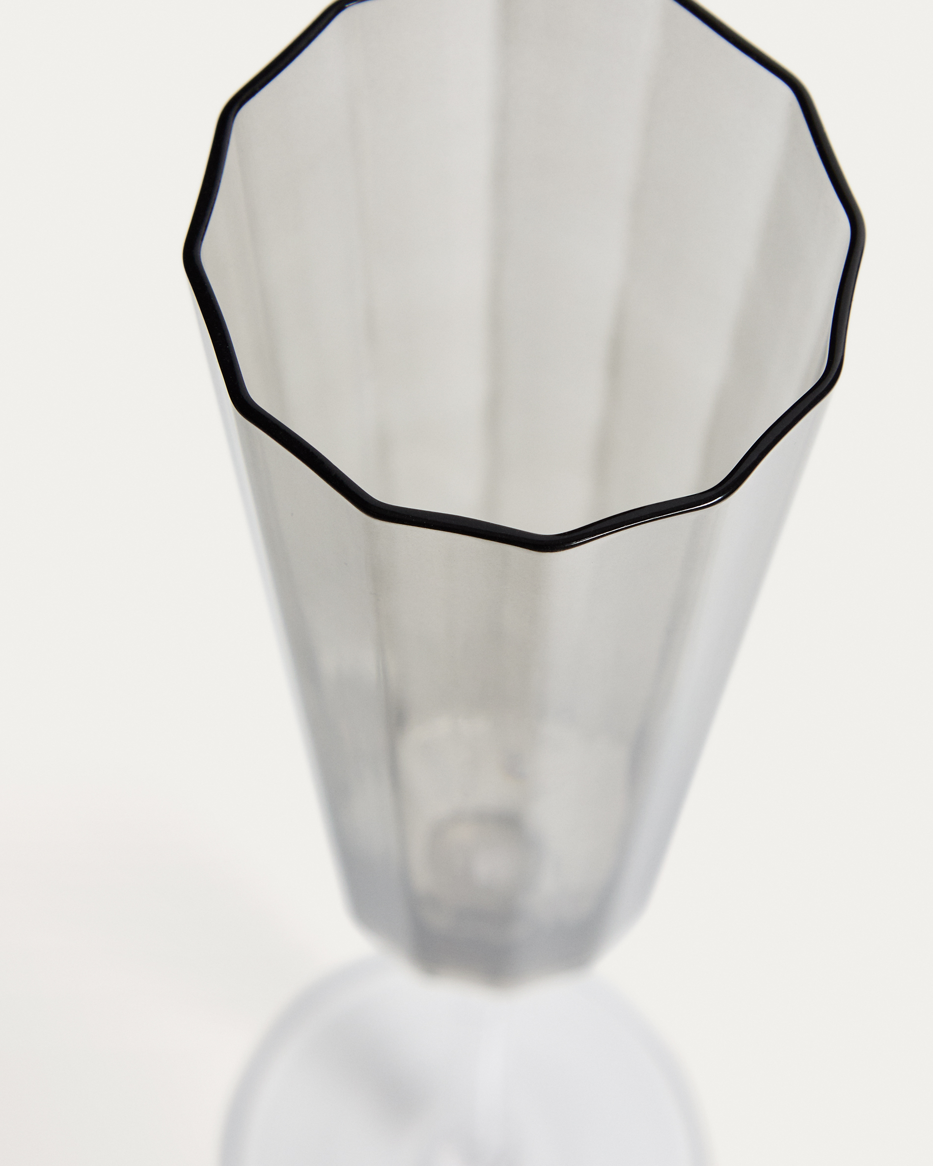 The Clarien collection features grey glass pieces defined by straight lines and geometric silhouettes. The translucent finish softens the shape and tempers the light, adding depth to the designs. Made in dishwasher-safe glass, these pieces are designed for continuous use and are both comfortable and durable. Their restrained character makes them suitable for everyday use or more formal occasions, always maintaining a discreet presence on the table.