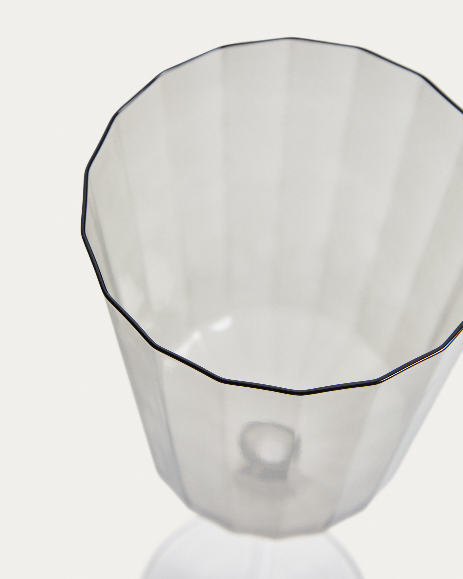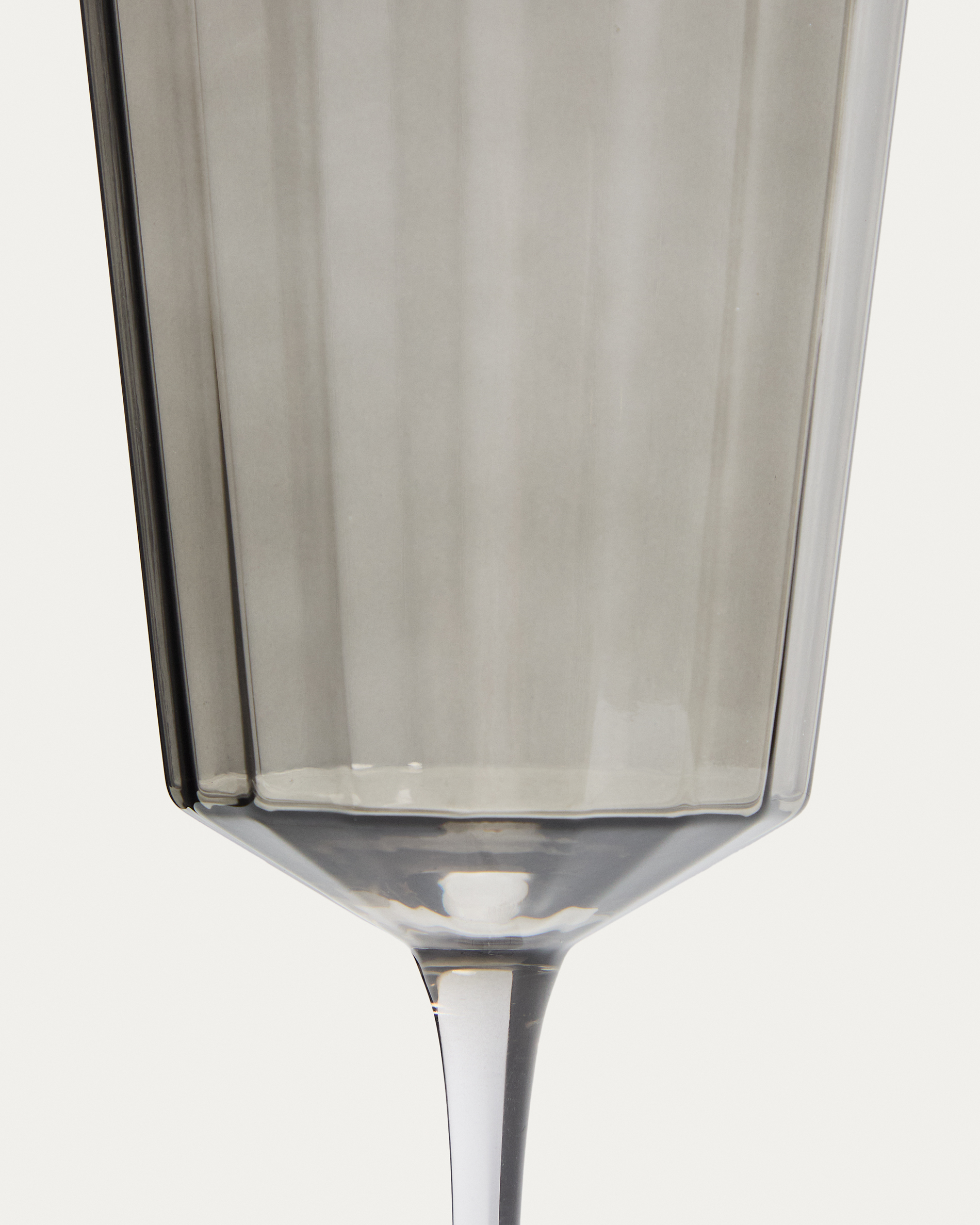 The Clarien collection features grey glass pieces defined by straight lines and geometric silhouettes. The translucent finish softens the shape and tempers the light, adding depth to the designs. Made in dishwasher-safe glass, these pieces are designed for continuous use and are both comfortable and durable. Their restrained character makes them suitable for everyday use or more formal occasions, always maintaining a discreet presence on the table.