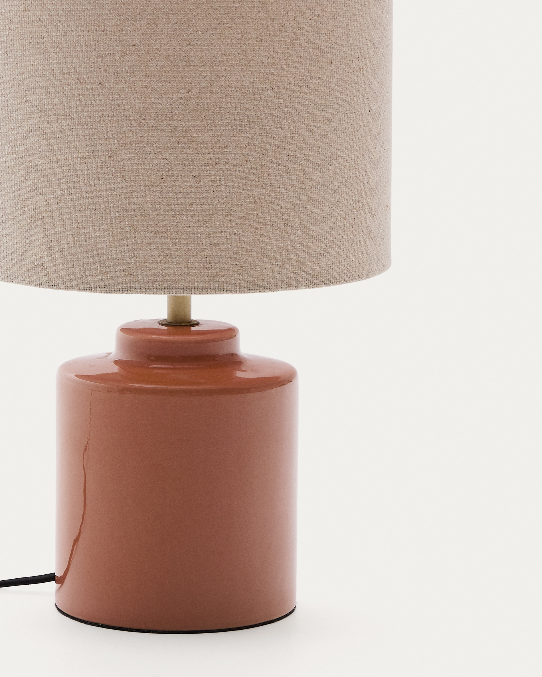 Daeli kerámia asztali lámpa narancs finishel és bézs pamuttal