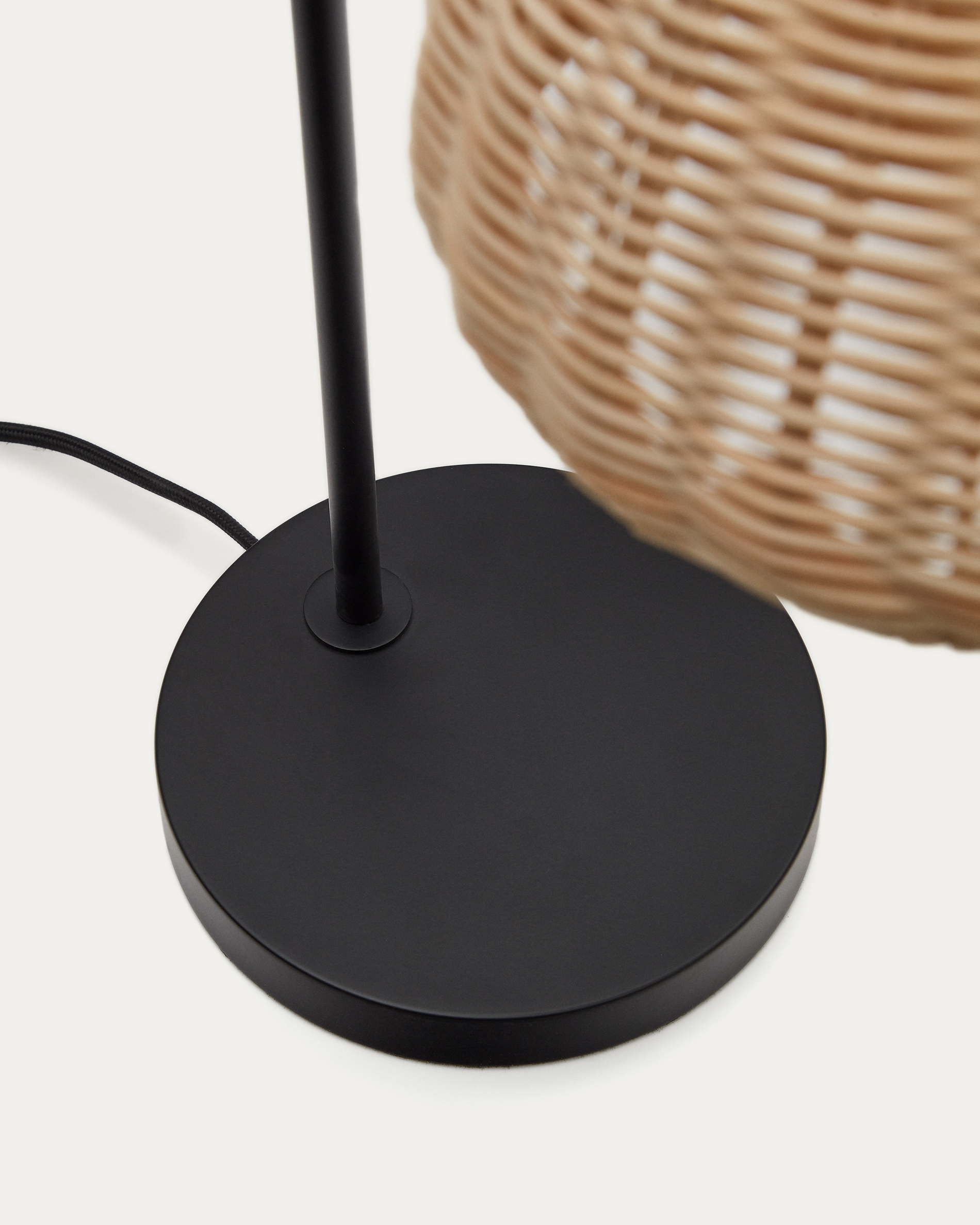 • Fém asztali lámpa természetes rattan árnyékkal és fekete festett fém kerettel.