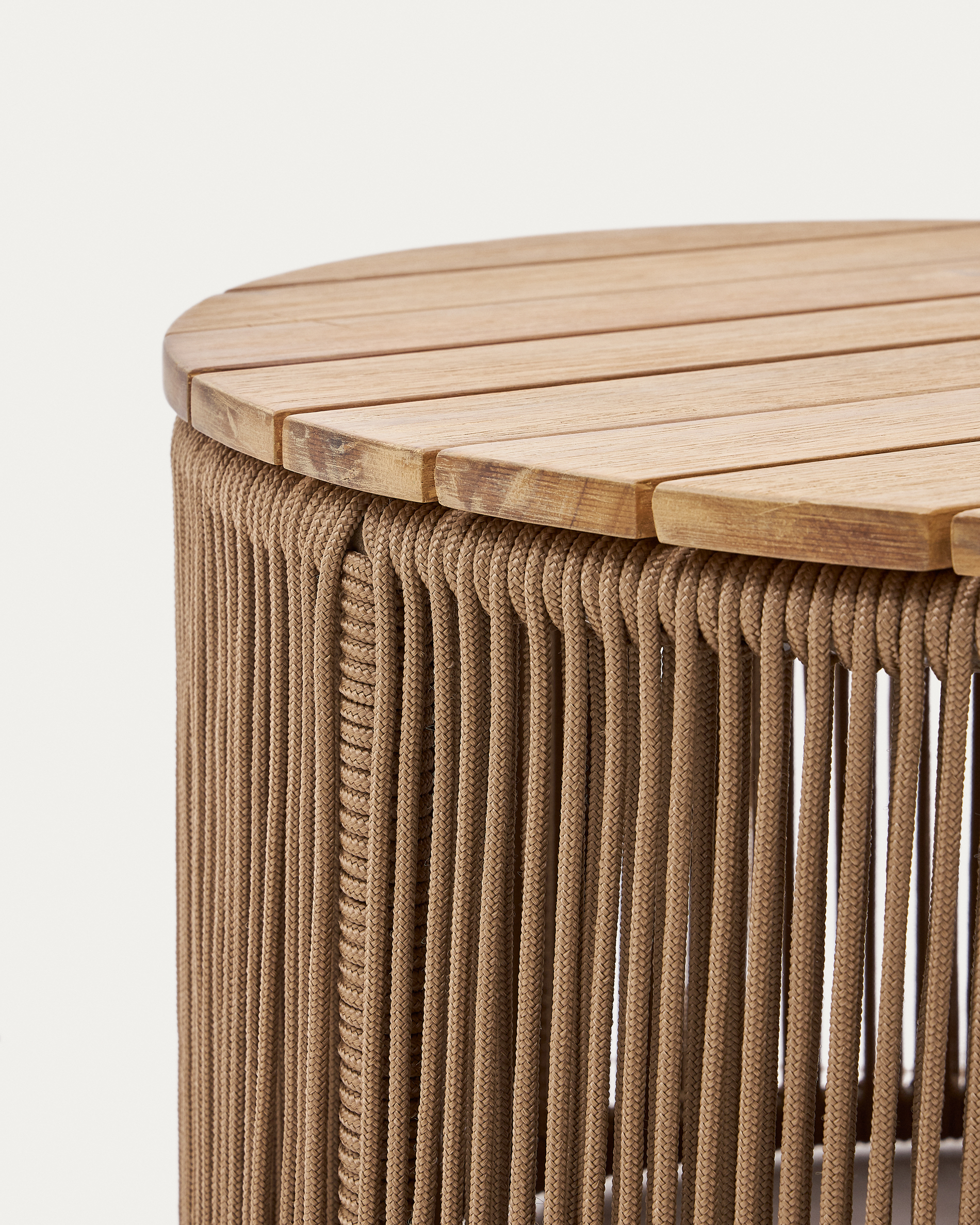 Dandara dohányzóasztal acélból, bézs kötélből és tömör akácfából, Ø60 cm FSC 100%