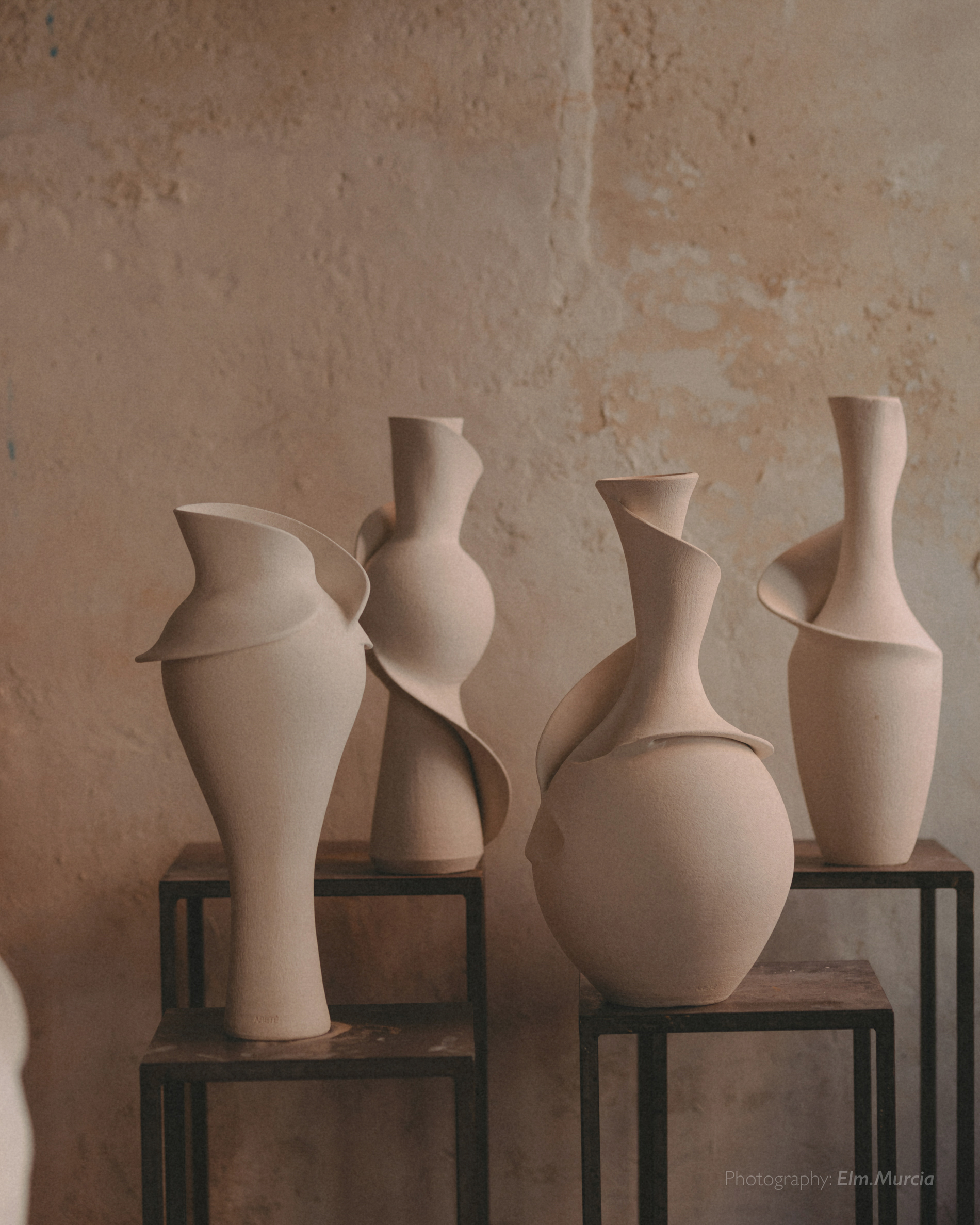 The Dervish collection is the result of the union between earth and movement. Each piece is handmade out of clay in rounded shapes reminiscent of the constant whirling of the dervishes, inspired by the harmony and beauty of this ancient ritual. The centre of each piece is the starting point of a spiral that invites us to look inwards and connect with the essence. Clay, a simple and natural material, is transformed here into a tribute to dance and the celebration of life, showing that movement can also be expressed in stillness.