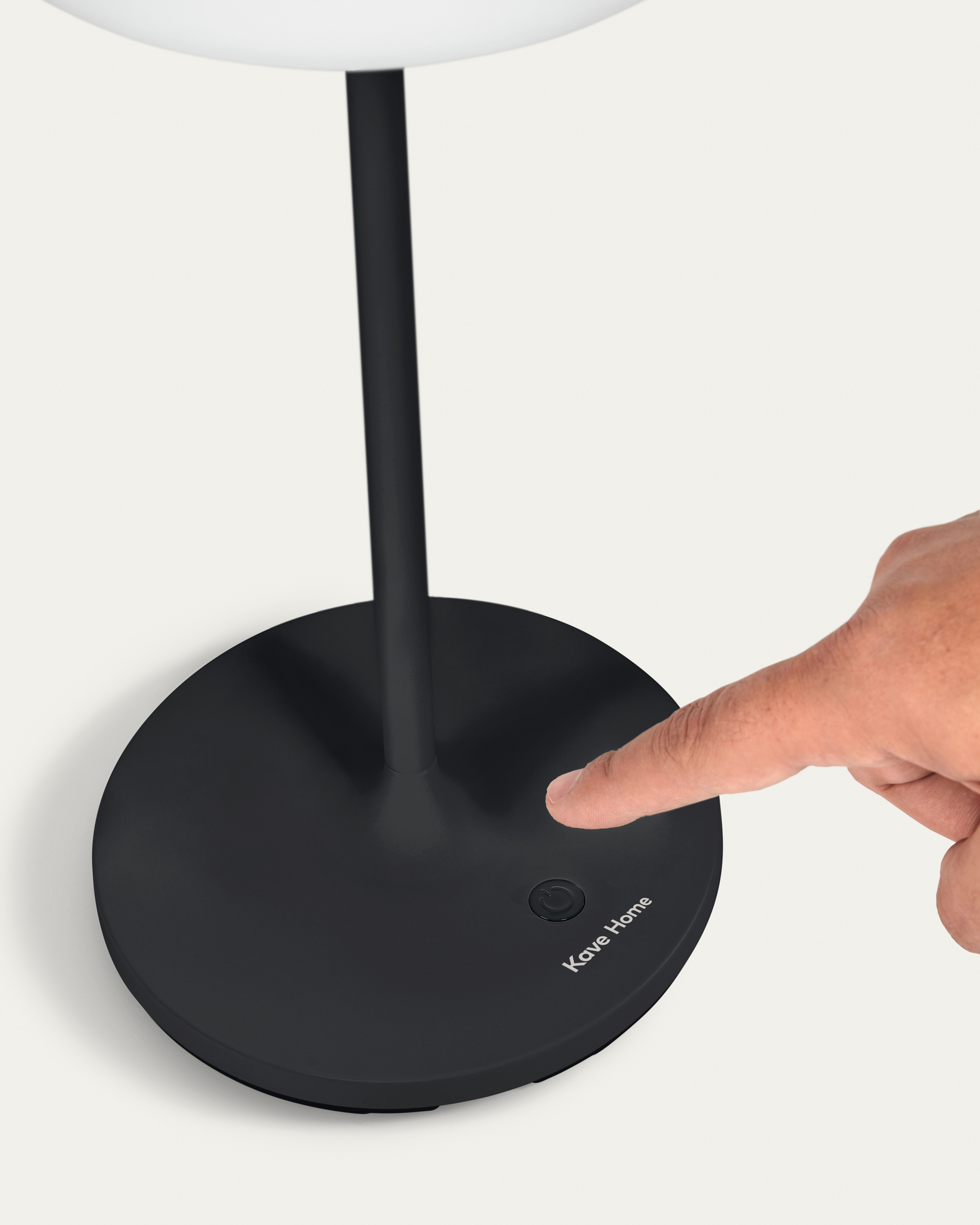 • Hordozható műanyag asztali lámpa fekete alumínium alappal.
