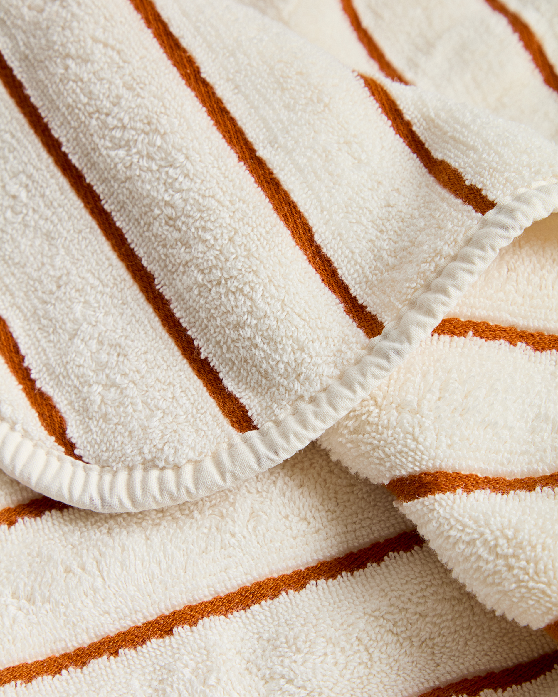 • 100% kefélt pamut frottírtörölköző kontrasztos csíkokkal.
