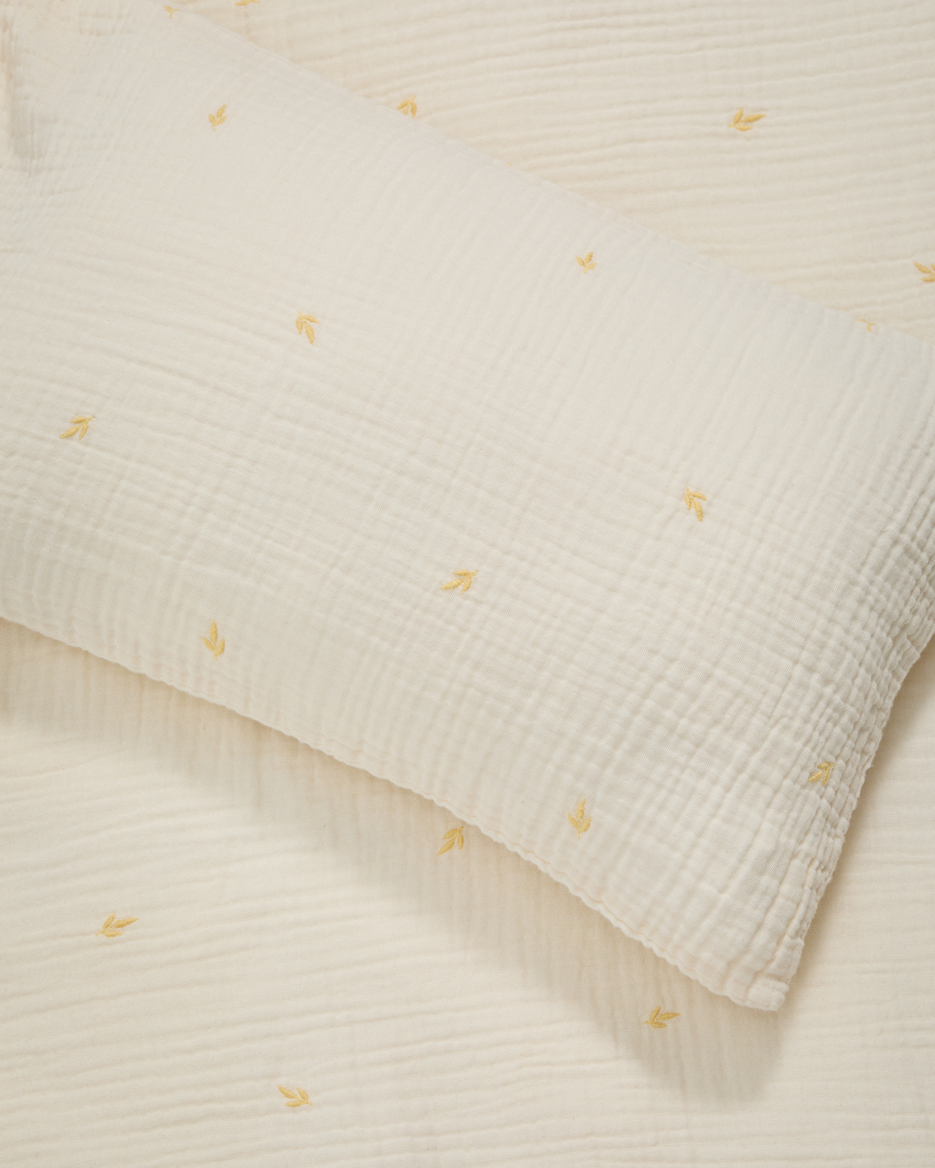 Dorani paplan- és párnahuzat készlet dupla géz pamutból hímzett részlettel átalakítható kiságyhoz