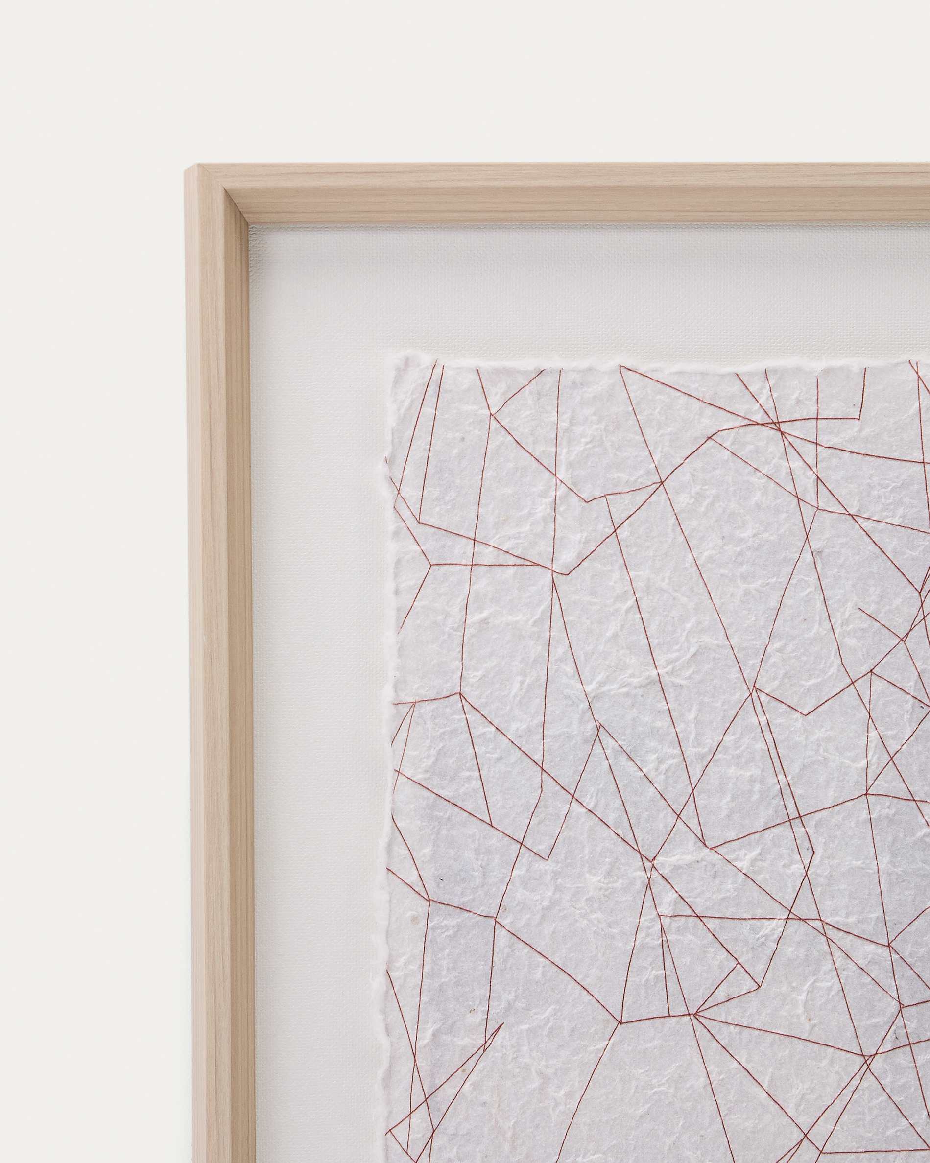• A vonalak egyszerűsége kontrasztban áll a textúra gazdagságával, vizuálisan kiegyensúlyozott és elegáns darabot alkotva.