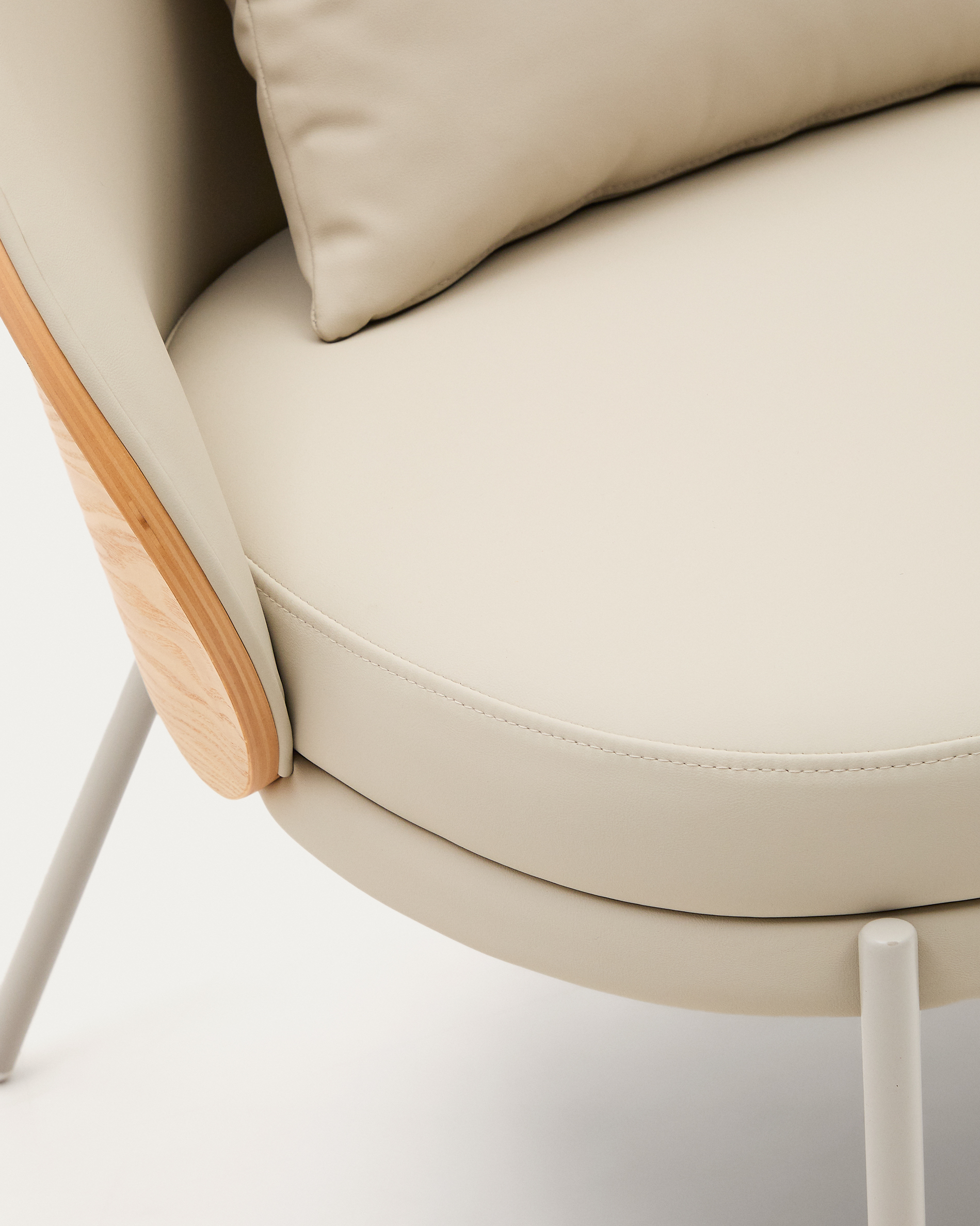 Eamy karosszék bézs műbőrrel, tölgyfurnér természetes felülettel és bézs fémkerettel