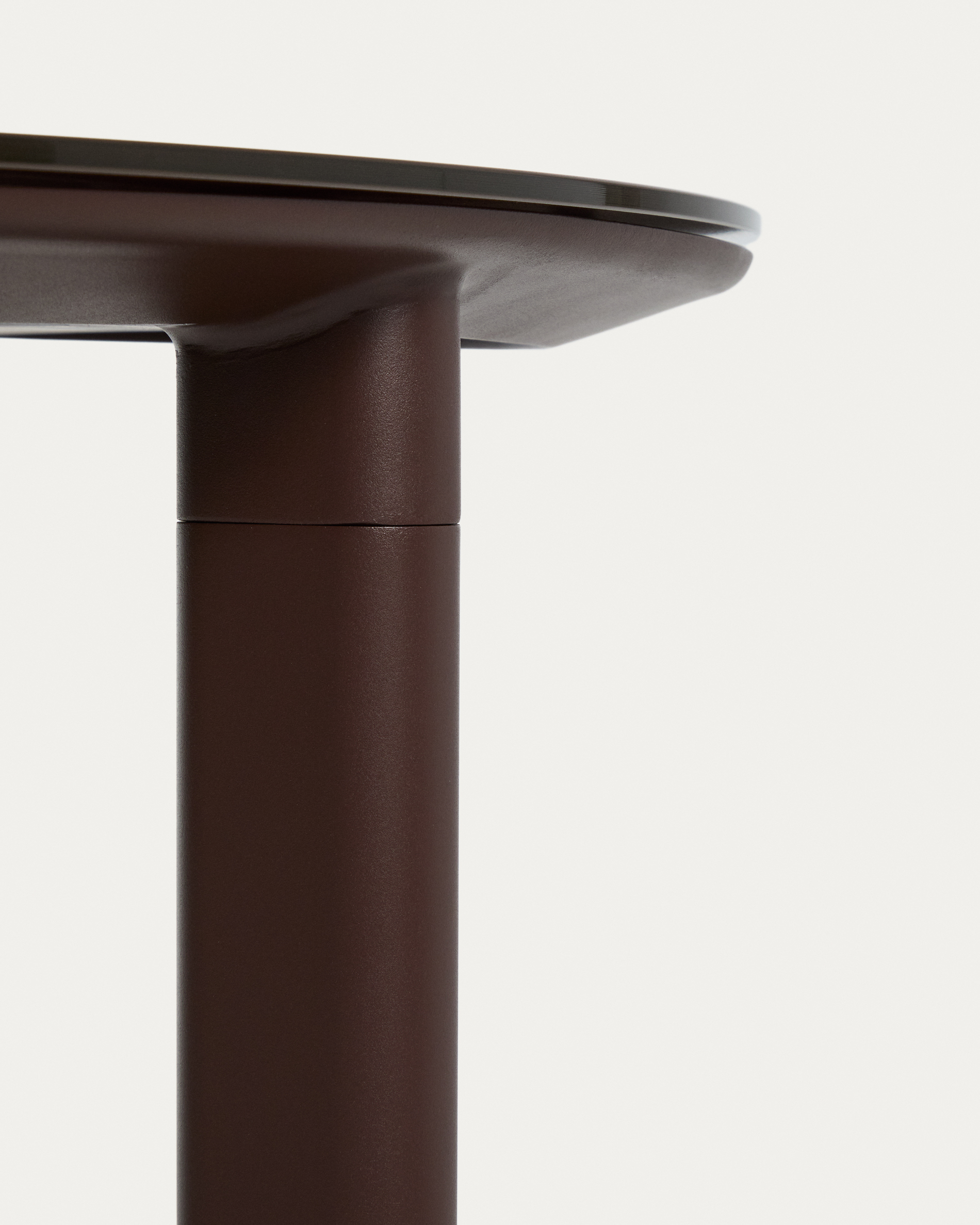 • Ovális asztal alumínium alap és edzett üveg felső résszel, egységes színre festve, UV-álló.
