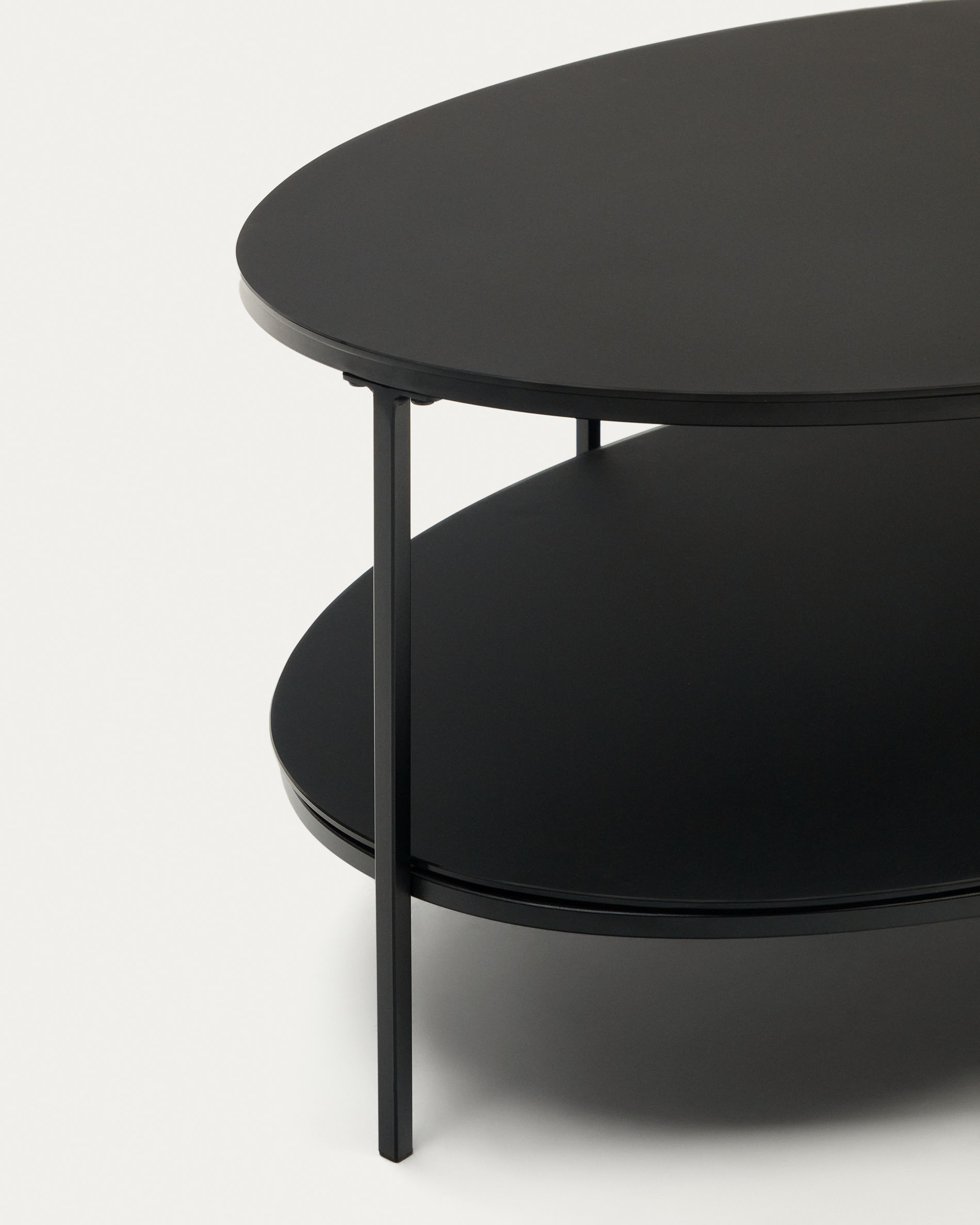 Fideia edzett üveg és fém kávézóasztal fényes fekete felülettel Ø 110 cm