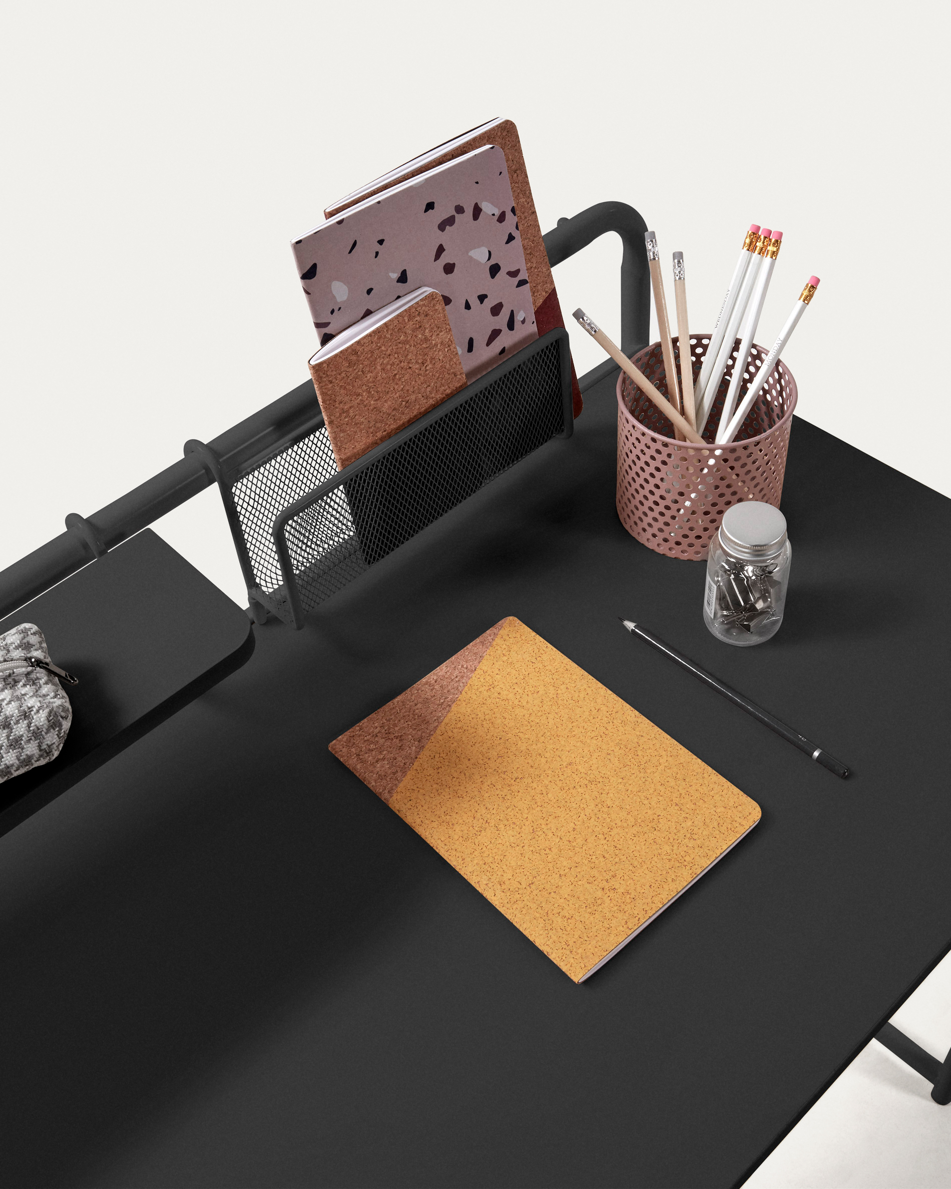 • Asztal 98 x 46 cm-es melamin felülettel, fekete kivitelben, spray-vel festett acél szerkezettel.