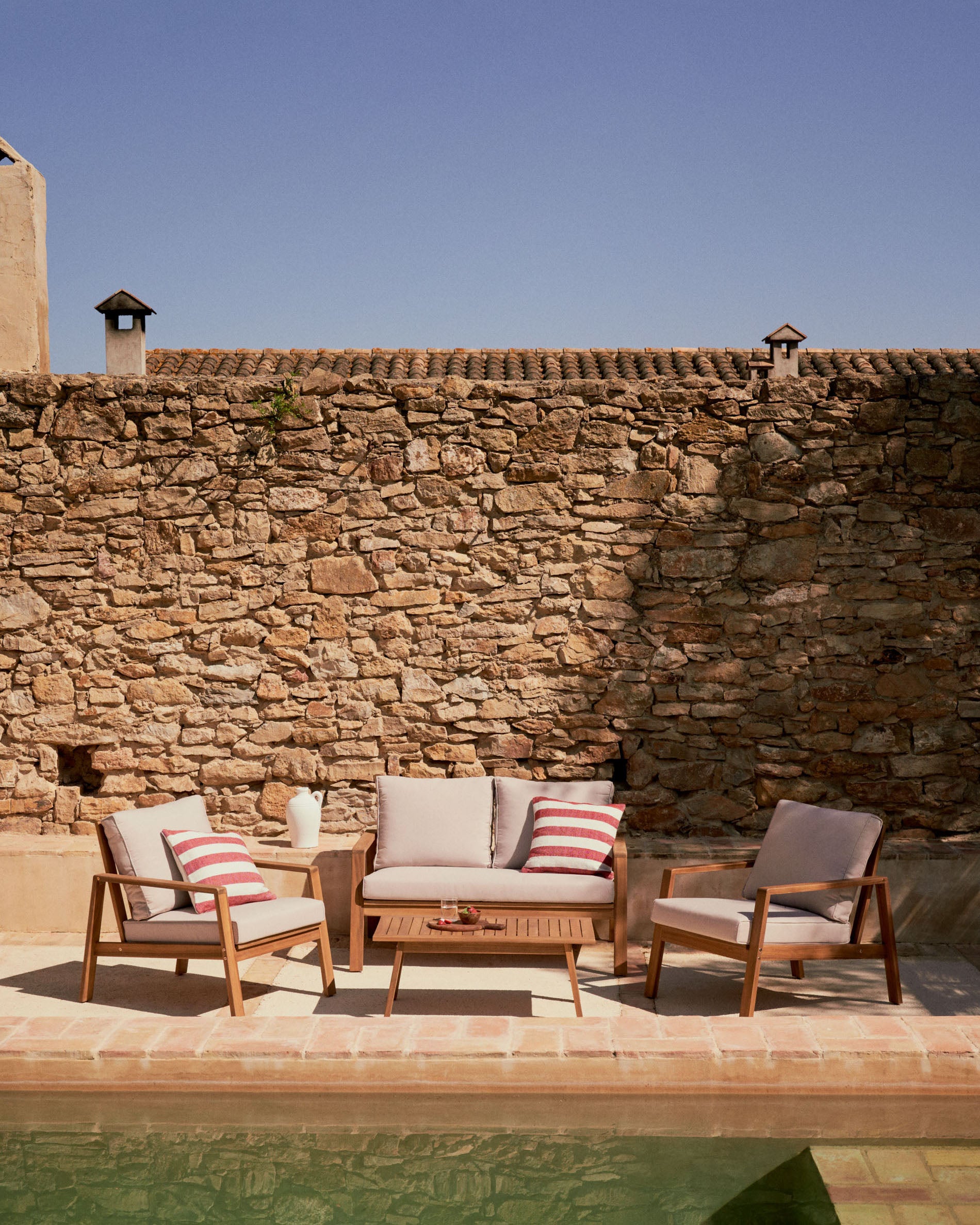 • A szett tartalmaz 2 személyes kanapét, 2 karosszék és dohányzóasztalt tömör akácfából.