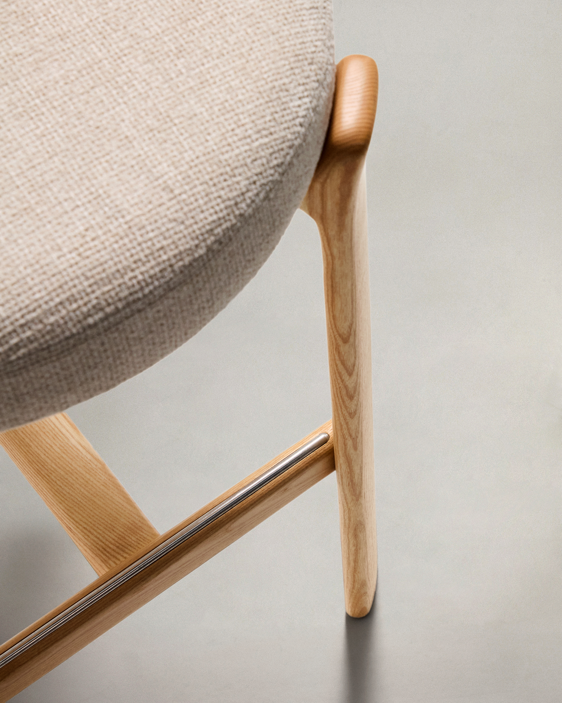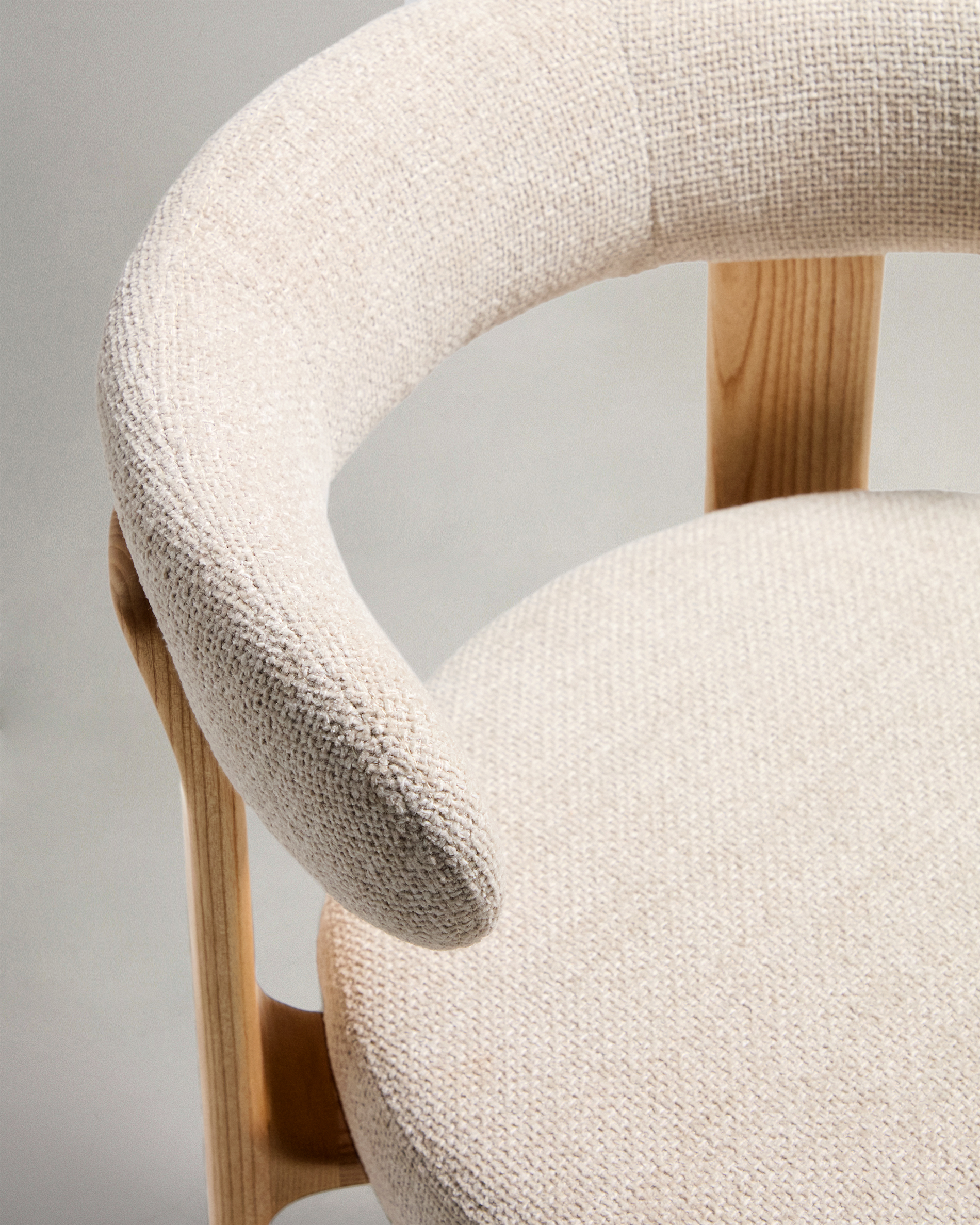 Bézs színű zseníliából és tömör kőrisfából készült gránit szék, natúr színű bevonattal, FSC 100%, 75 cm