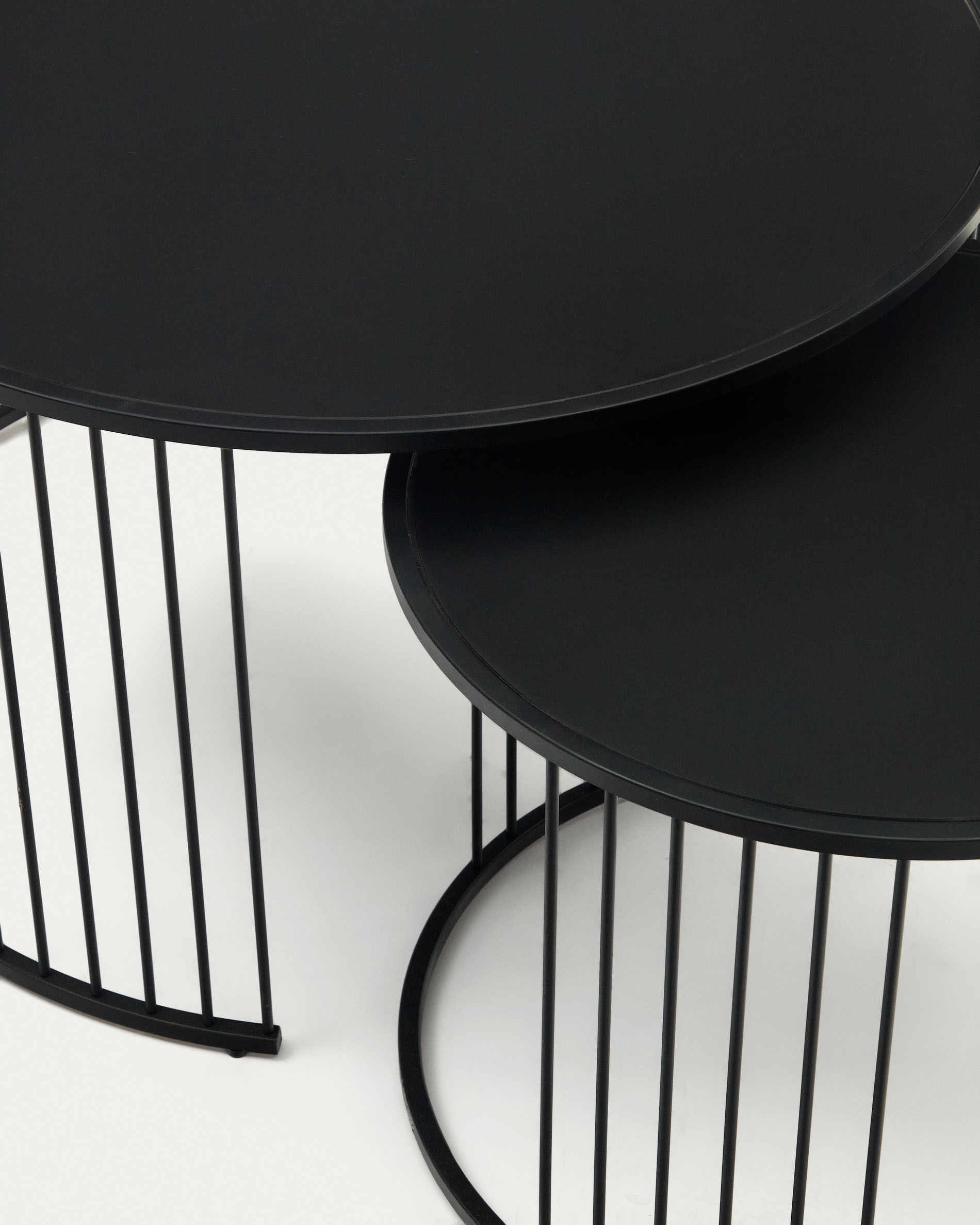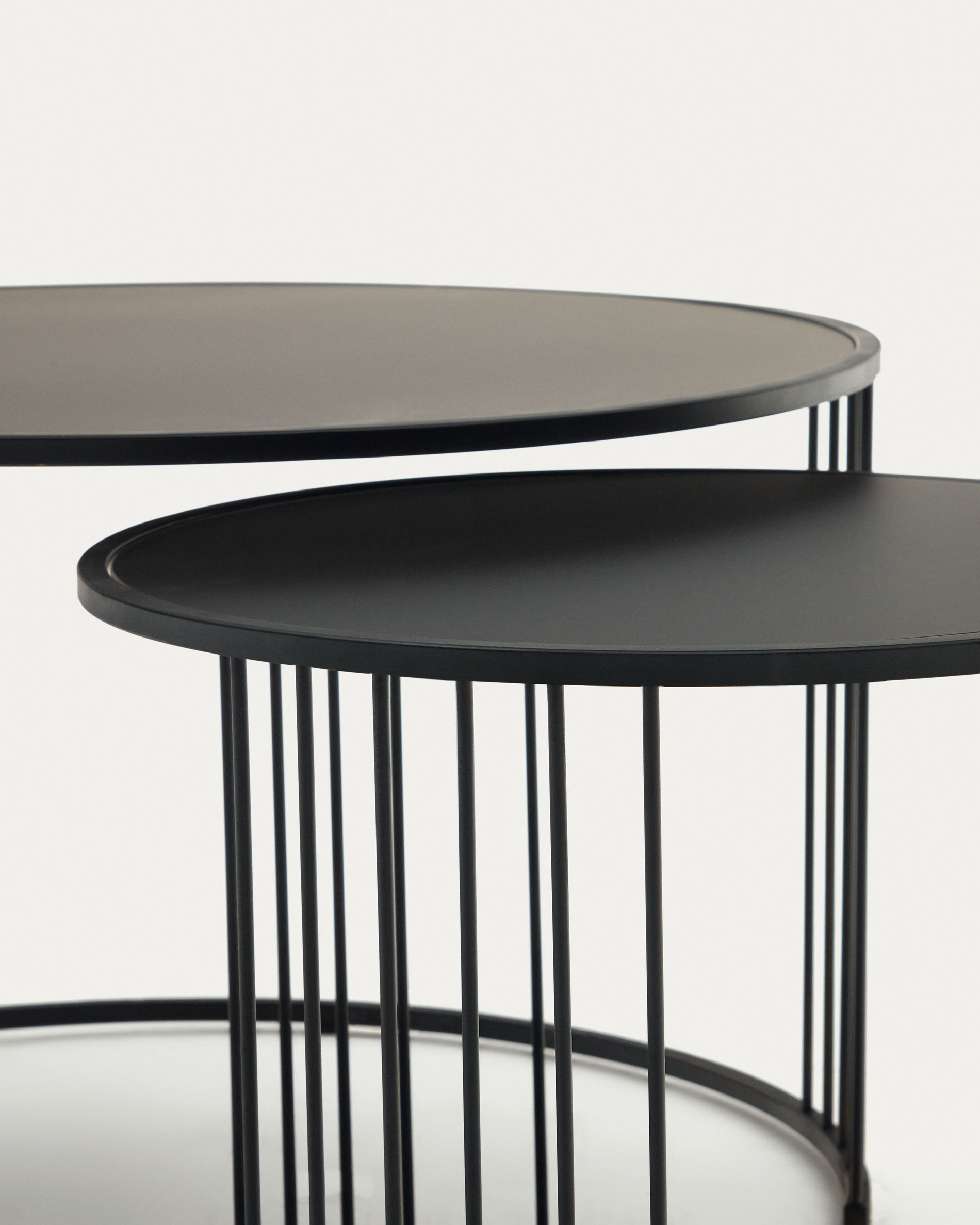 Hadar 2 darabos edzett üveg és fém oldalsó asztal szett matt fekete kivitelben, Ø 75cm / Ø 45cm