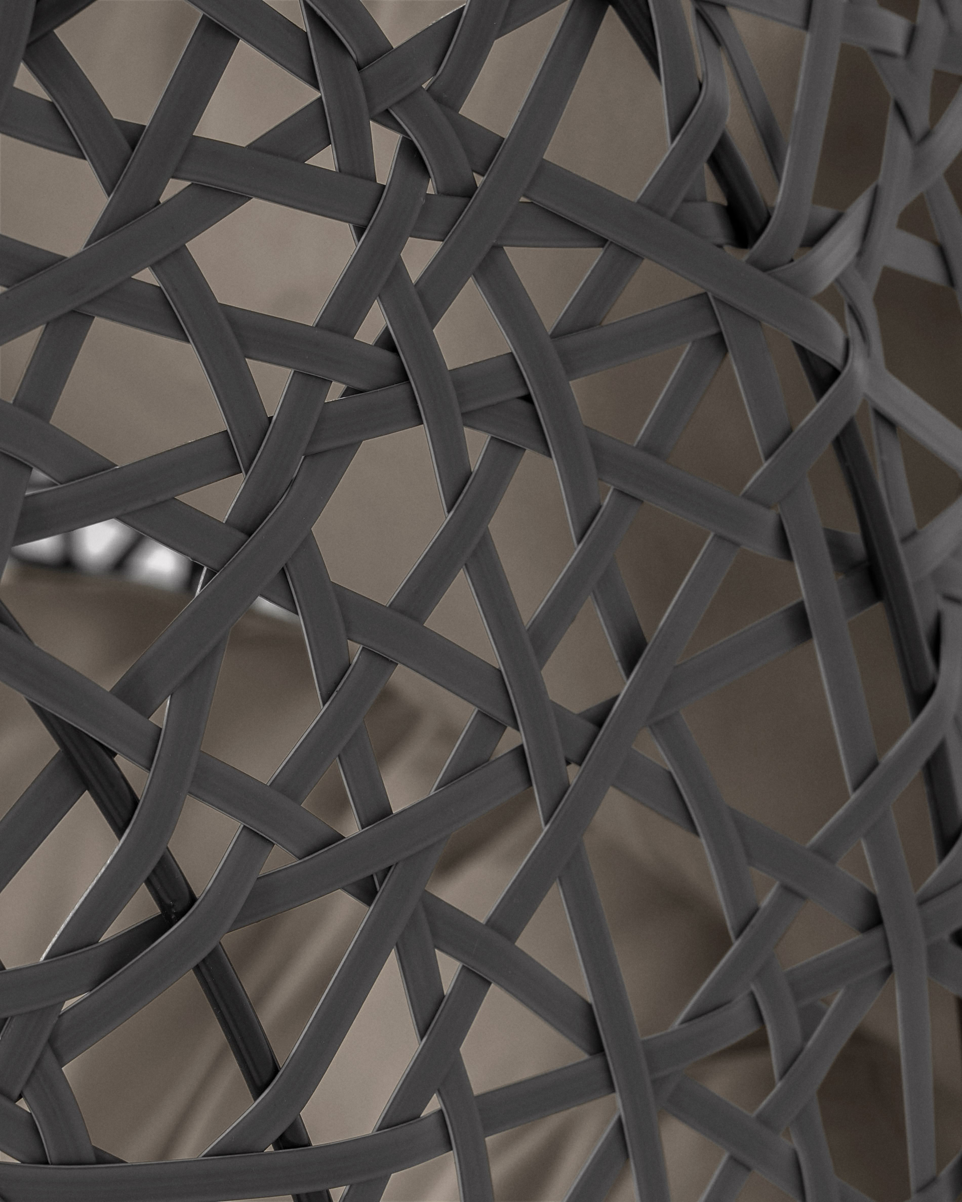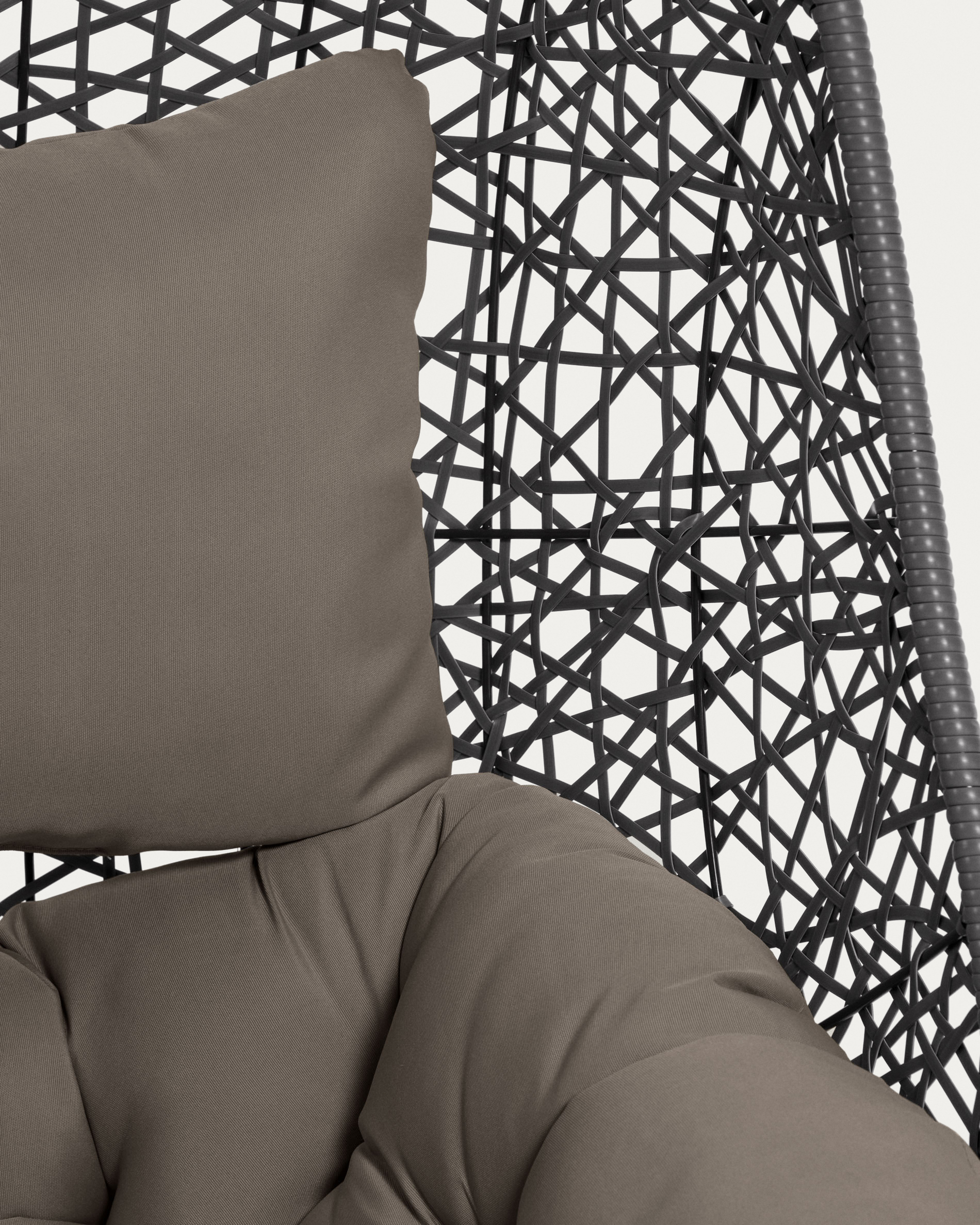 • Kézzel szövött sötétszürke polirattanból készült függőszék.