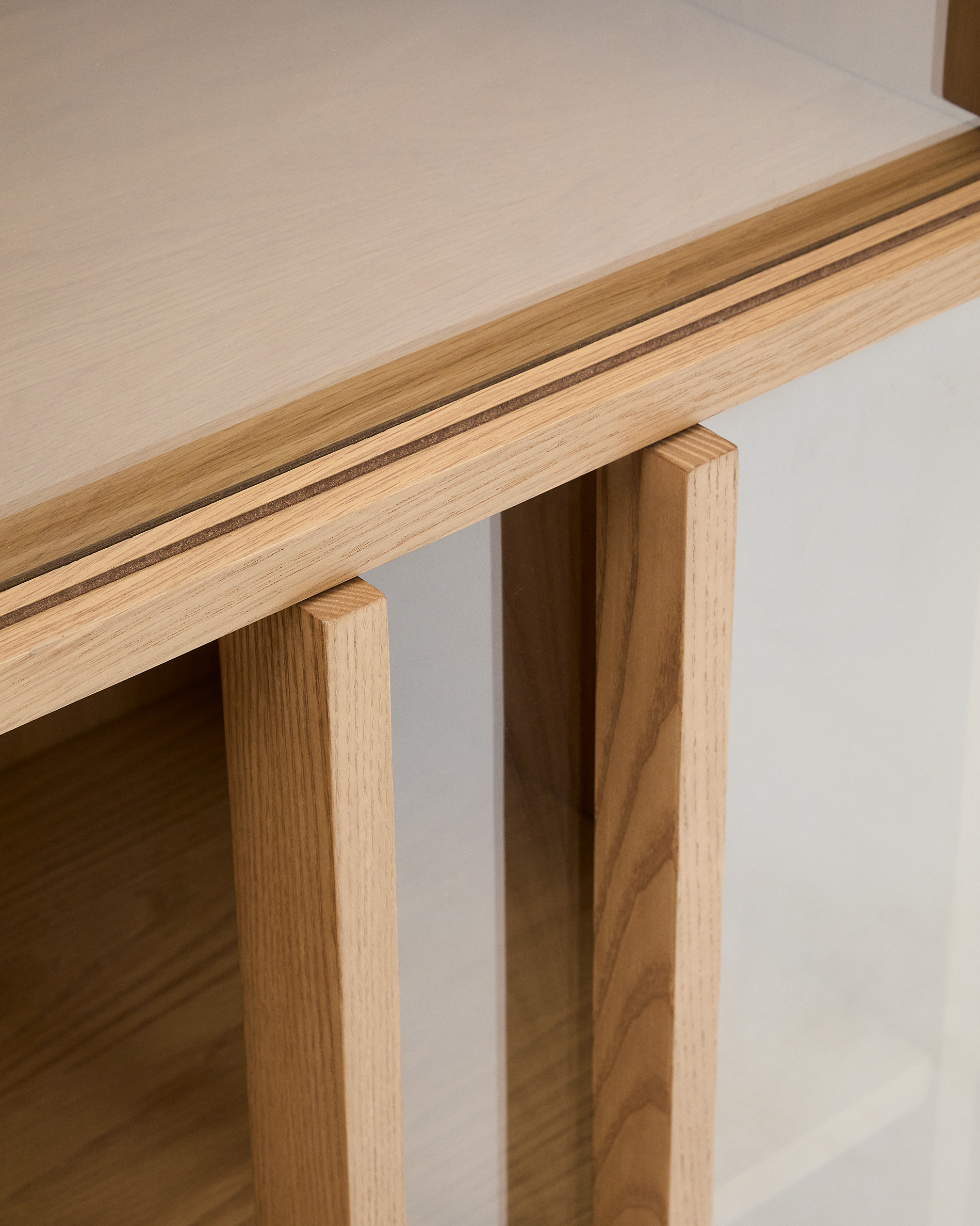• Tölgyfa furnérból és edzett üvegből készült vitrin.