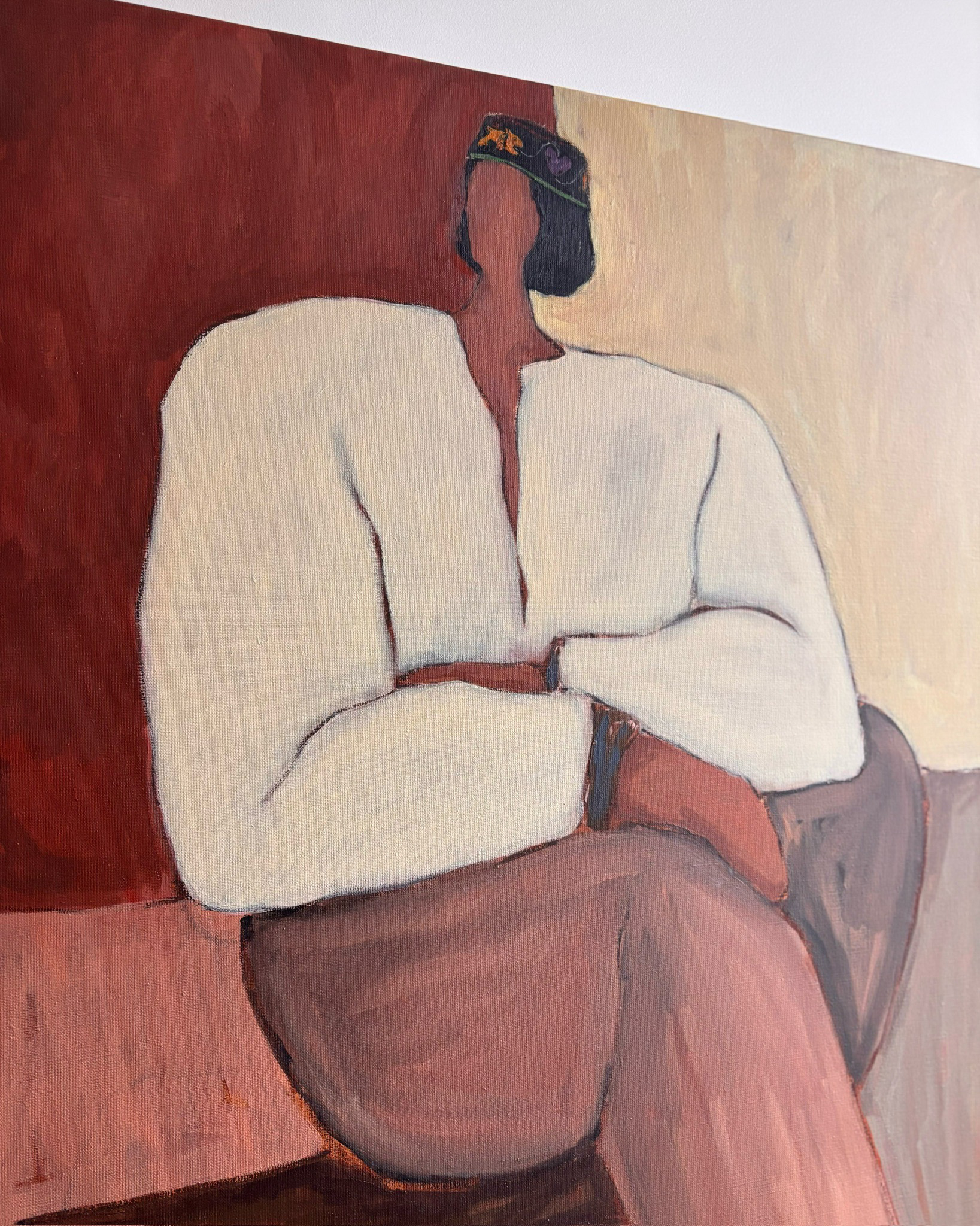 A Holding Memory az Abomey-ben, a volt Dahomey Királyságban (ma Benin) eredő appliquéd fejfedőről inspirálódott, mely gazdag szimbolikus textil hagyományáról ismert. Évekig egy gyermekkori otthon sarkában lógott, mindig jelen volt, de szinte láthatatlan szokás szerint. Idővel kezdte látni, ami valójában: a háttér része volt, de most fontos emlék lett: személyes történelem és örökölt kultúra találkozási pontja.