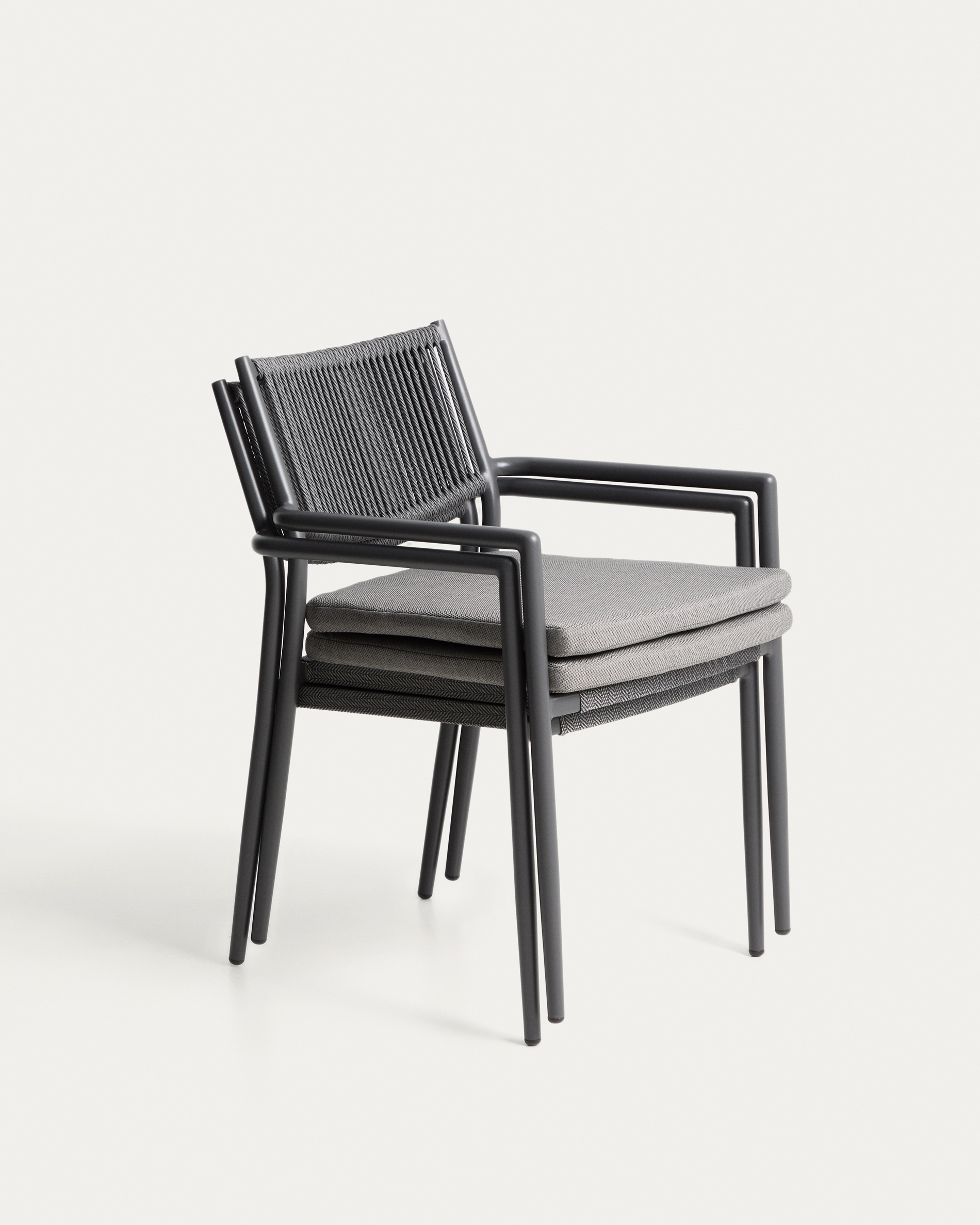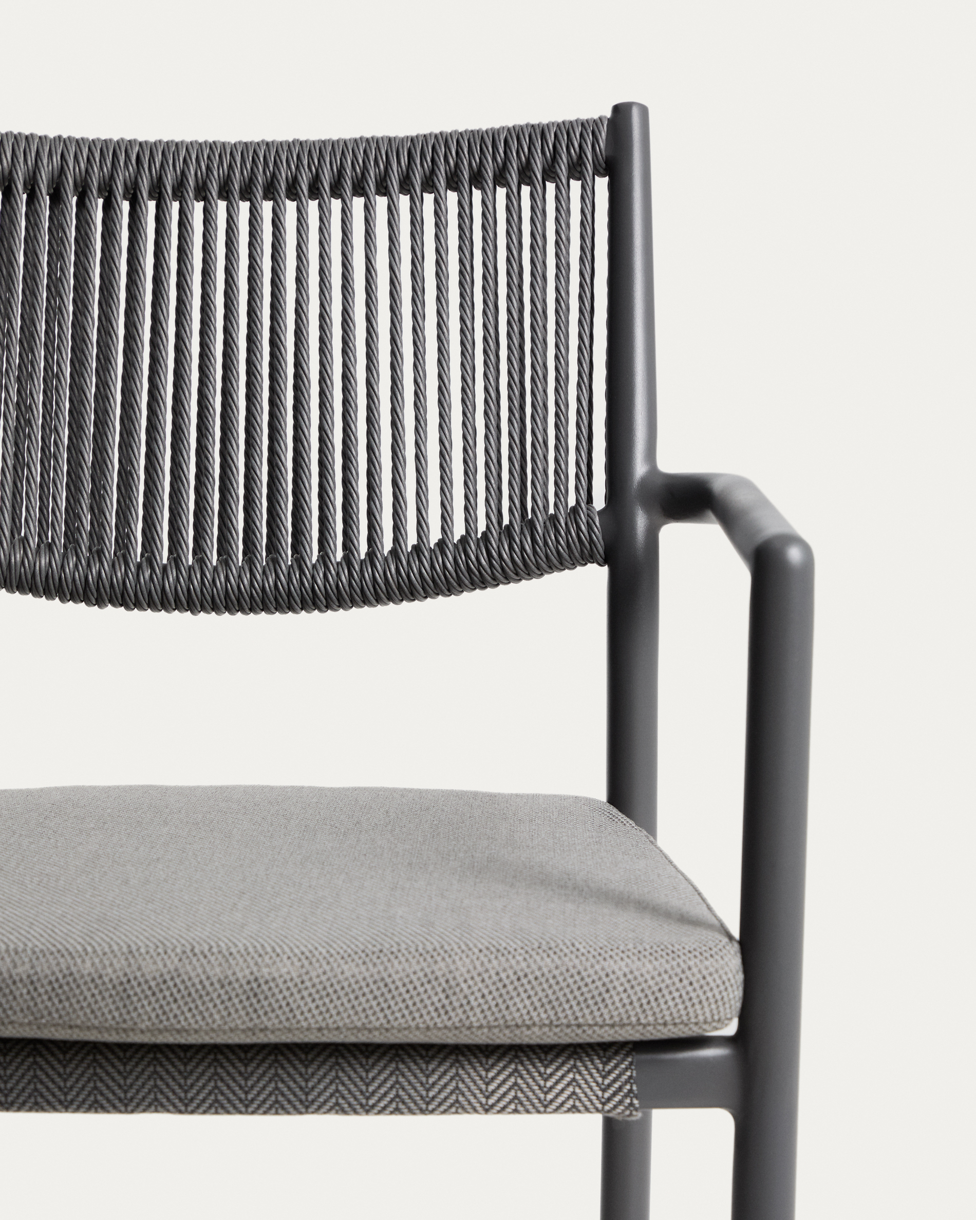 Izola kihúzható asztal szett grafit alumíniumból 4 Argasi székben, grafit alumíniumból és sötétszürke szintetikus kötéllel 185 (235) x 100 cm
