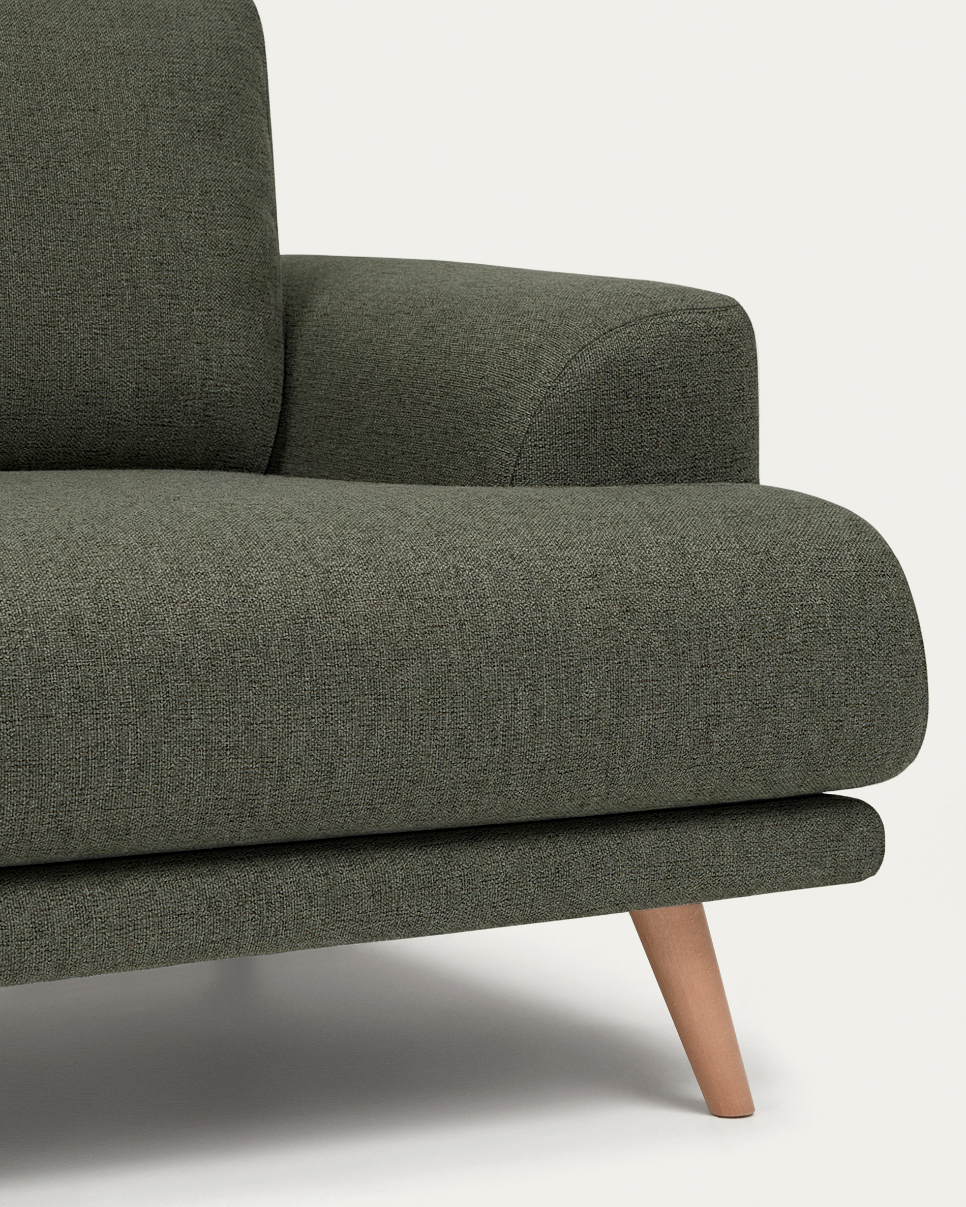 Karin sötétzöld 3 személyes kanapé tömör bükkfa lábakkal 231cm