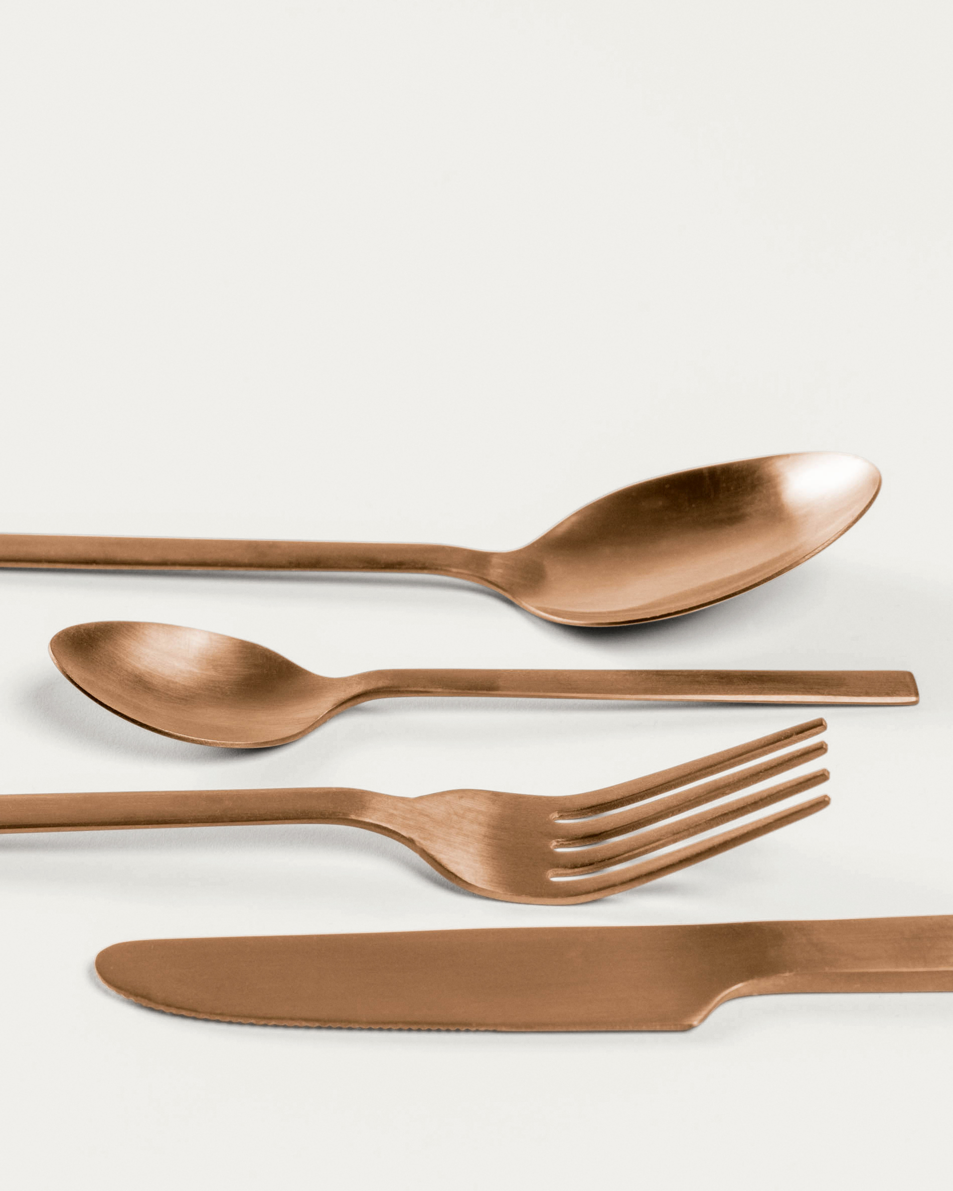A Kelda készlet rozsdamentes acélból készült, matt réz felülettel, készen áll minden étkezéshez, az első fogástól a vacsora utáni kávéig. Akár levest, salátát vagy halat szolgál fel, ez a 4 villából, 4 kanálból, 4 késsel és 4 teáskanálból álló készlet mindenre kiterjed. A makulátlan tisztaság érdekében kézi mosást javasolunk.