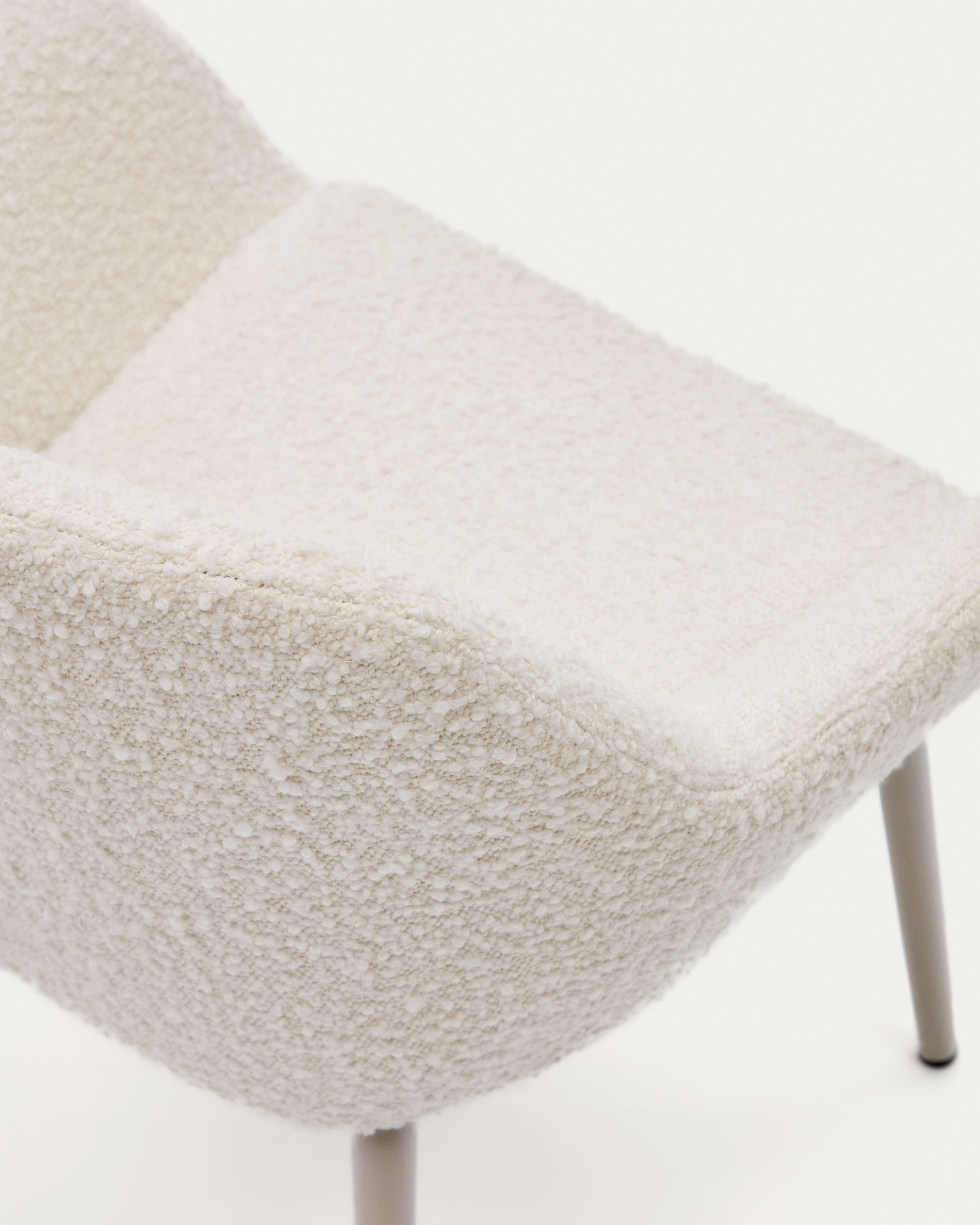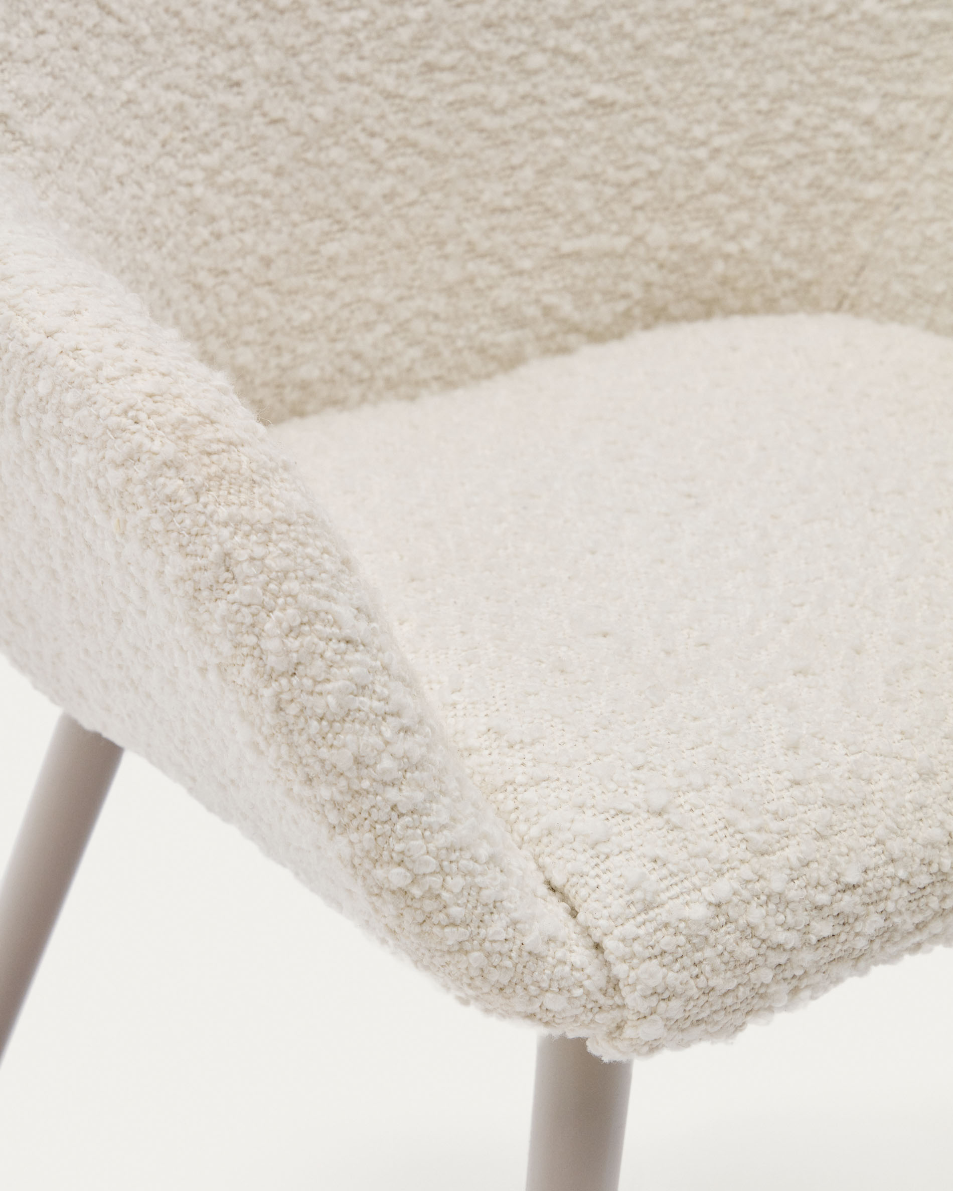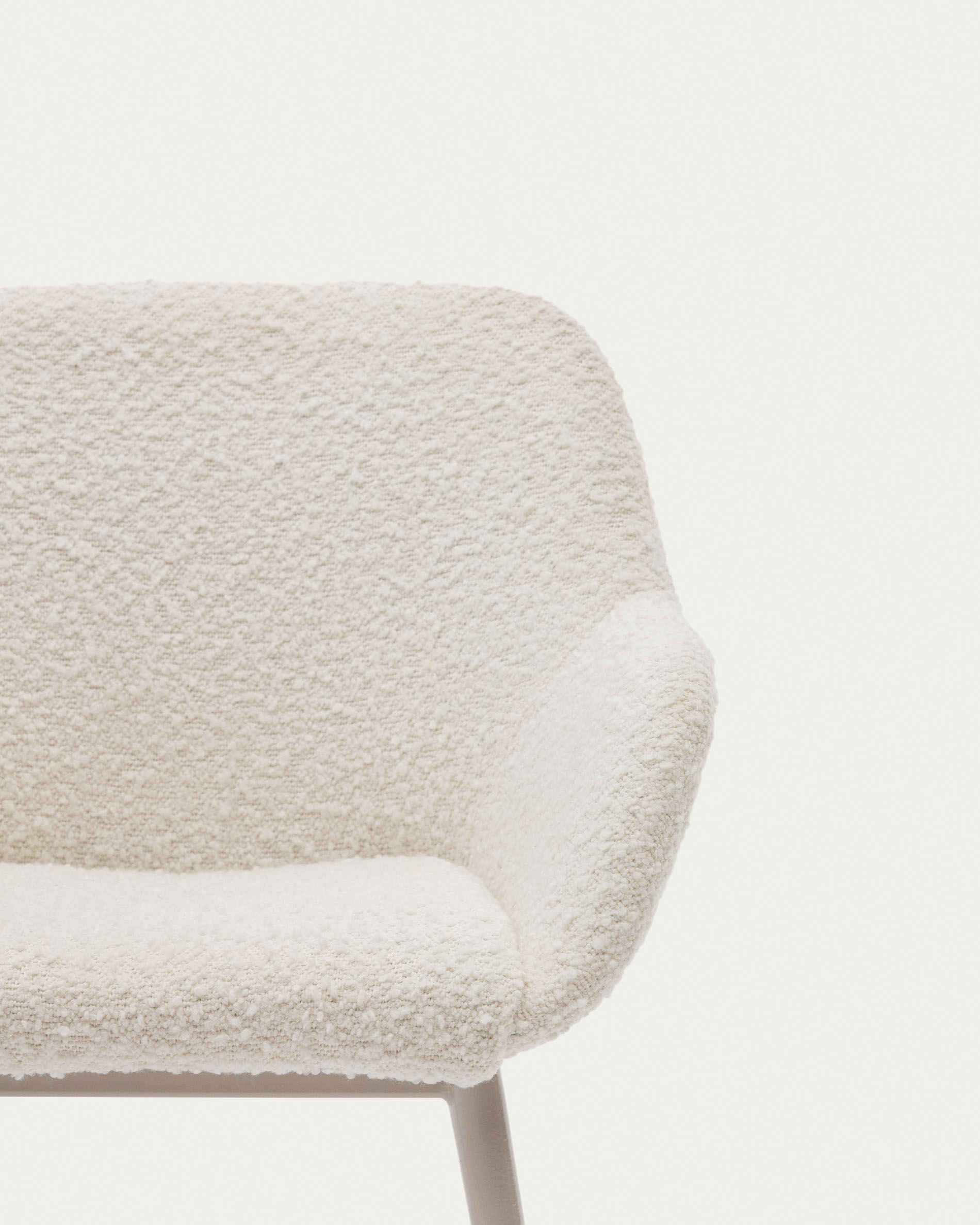 Konna gyerek szék fehér bouclé anyagból, acél lábakkal és bézs befejezéssel