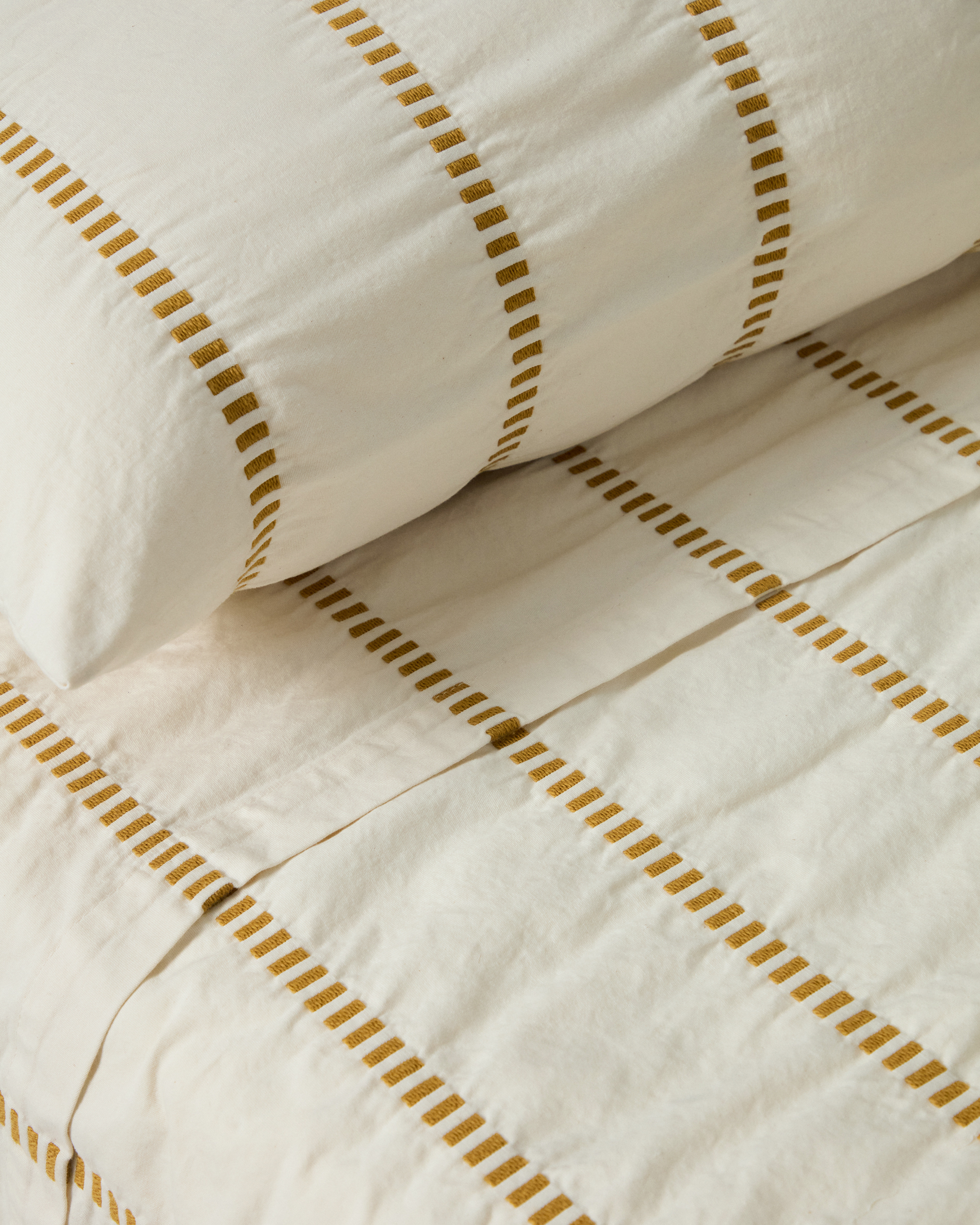 Lidala set of 2 mustard striped 100% cotton jacquard cushion covers 50 x 50cm