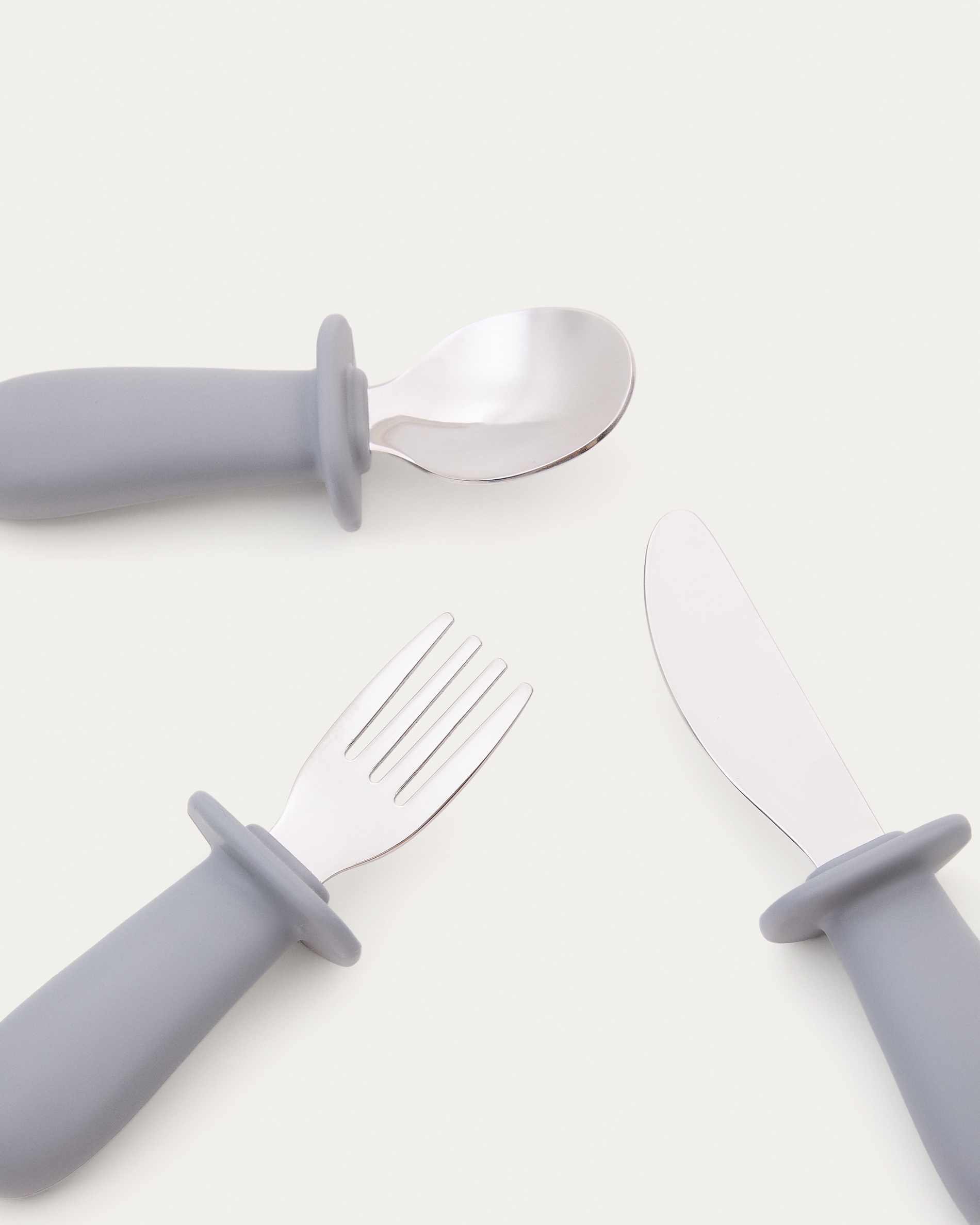 • Szilikon és rozsdamentes acél kés, villa és kanál szett.