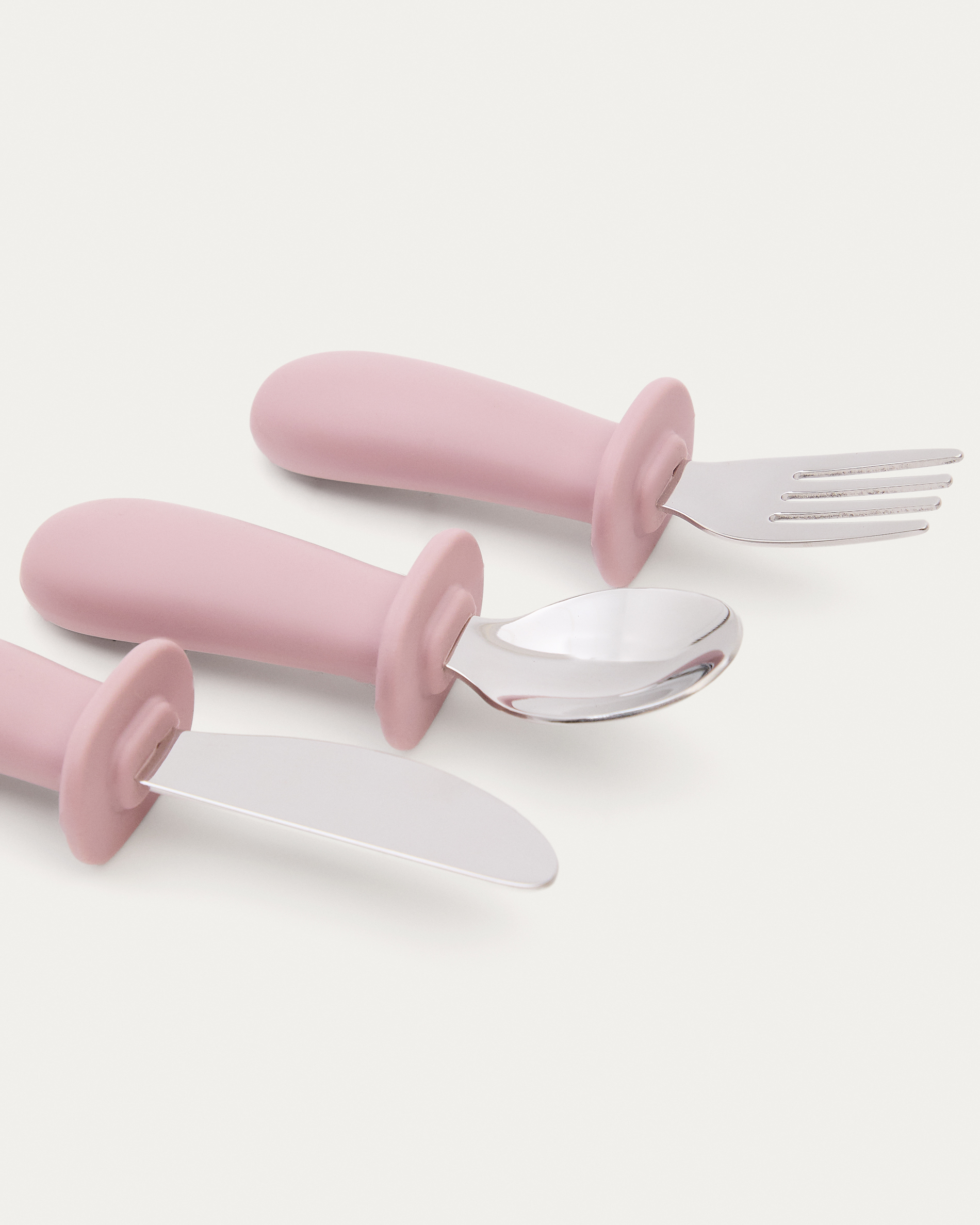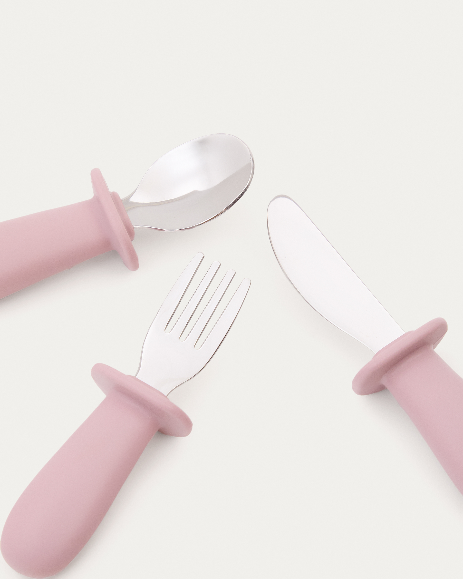 Lili kés, villa és kanál szett rózsaszín szilikonból