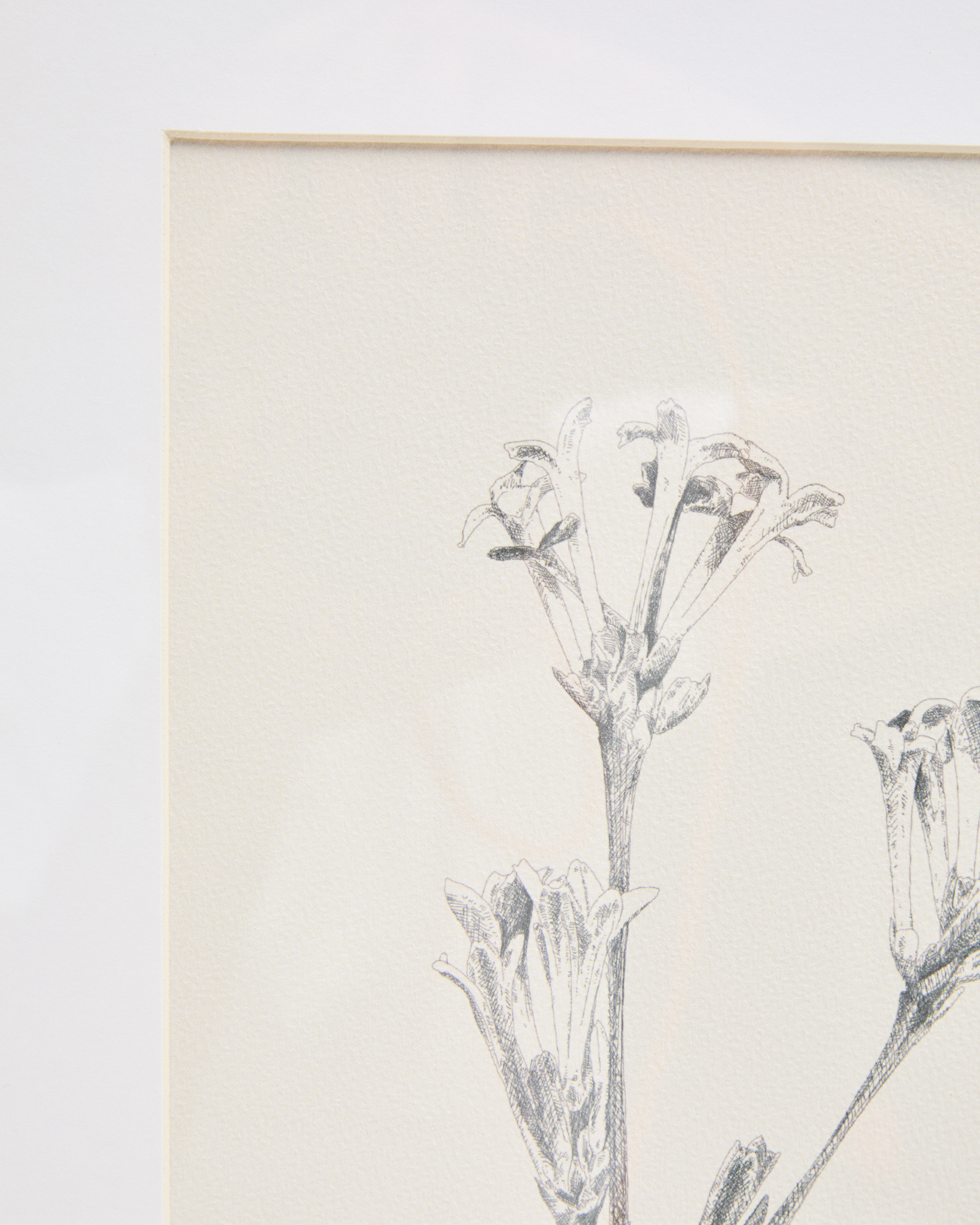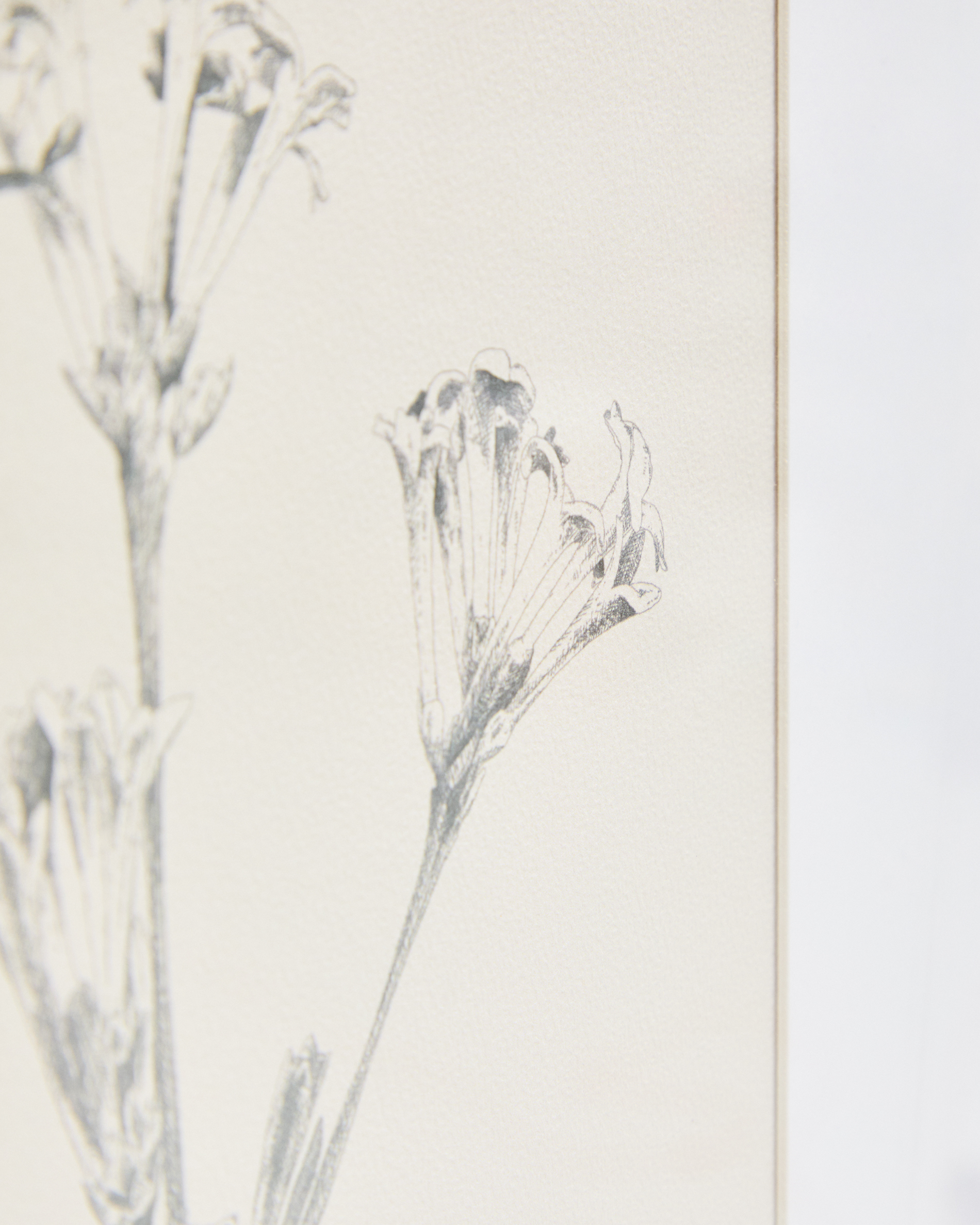 • Picture with botanical-style printed pencil illustration.