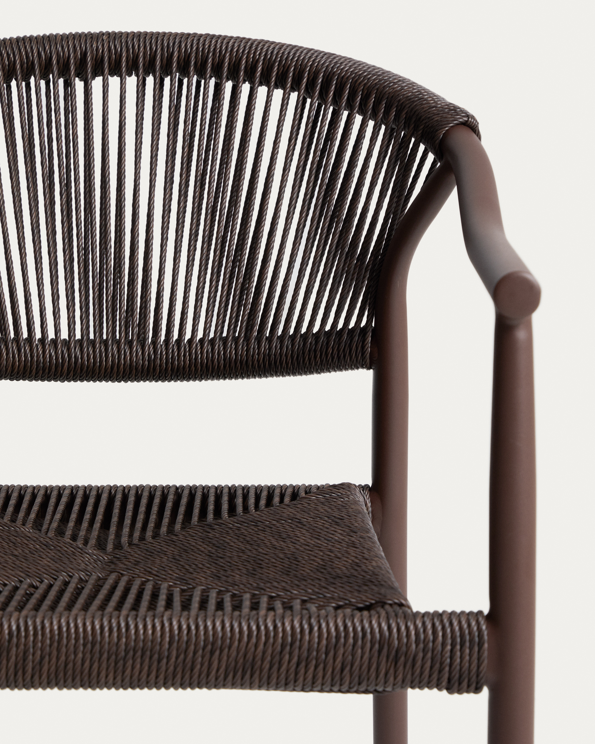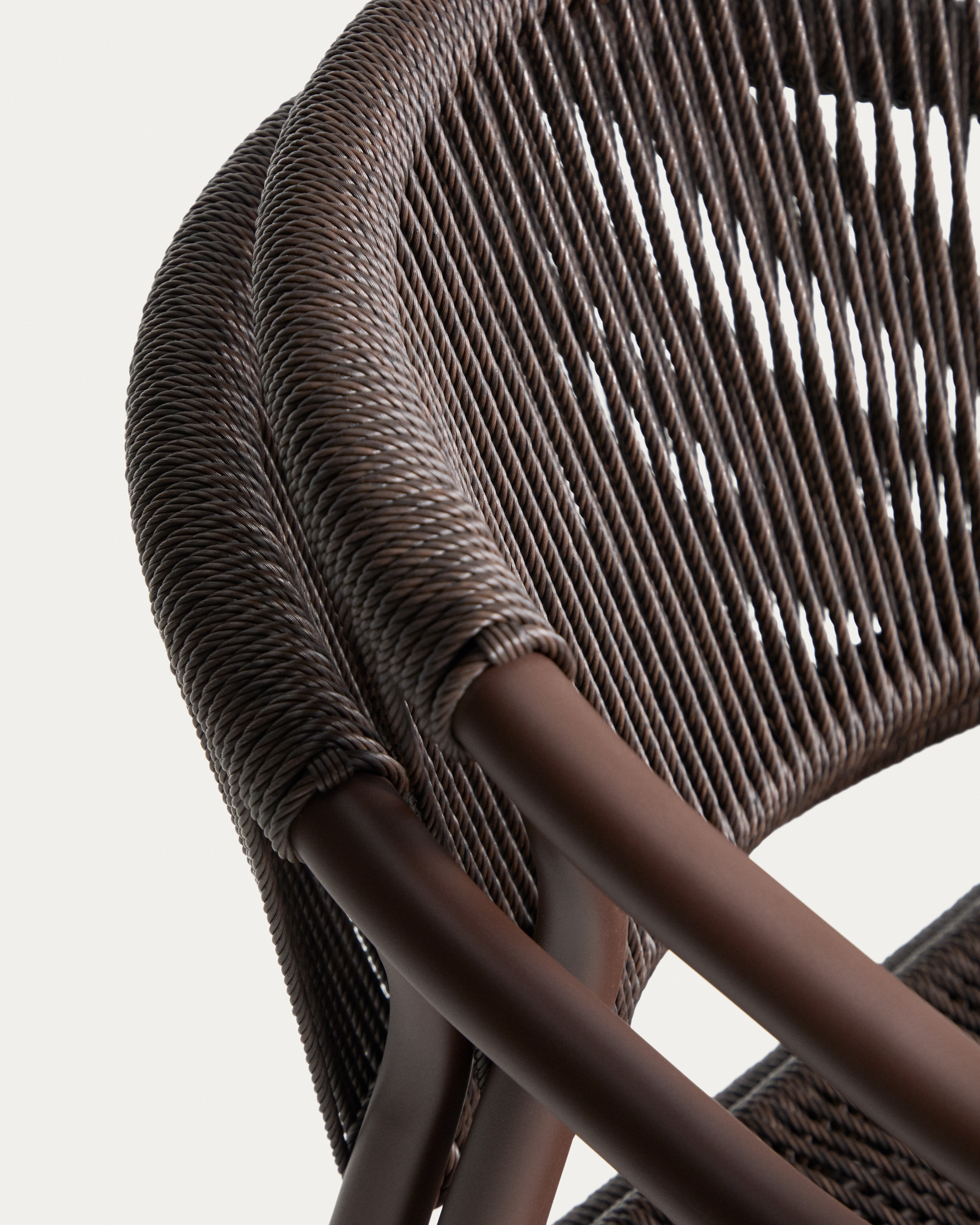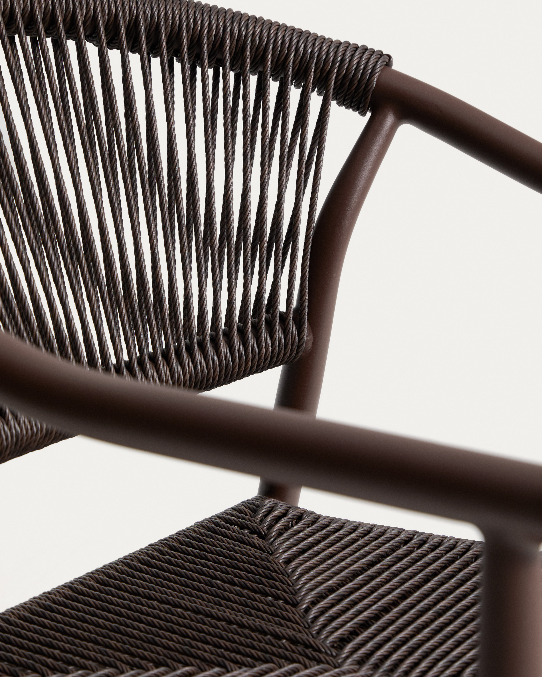 • Kézi fonott szintetikus kötél háttámla és ülőfelület kültéri használatra.