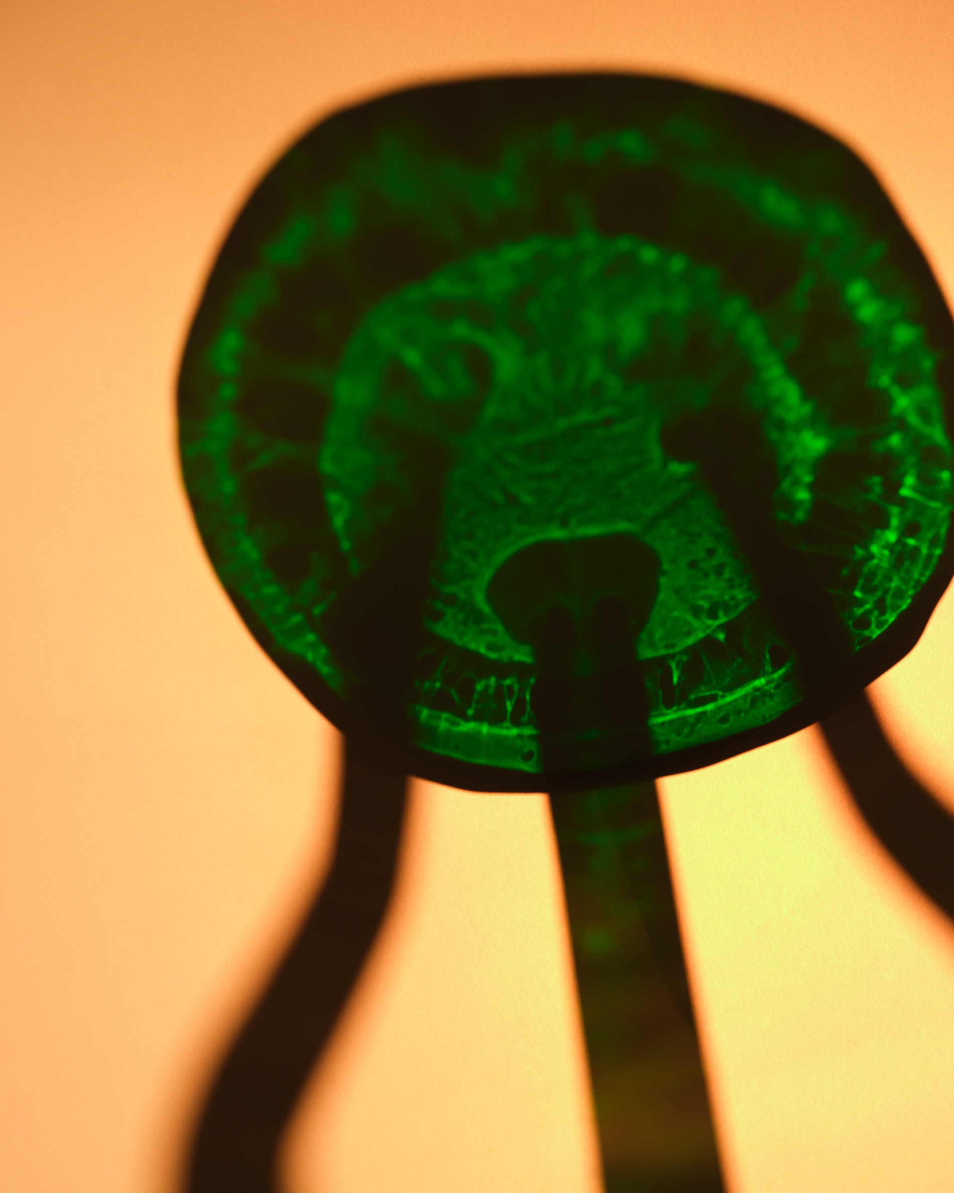 A Sunburst kollekció egy bensőséges projekt, amely az emlékek és a jelen találkozásából született, egy híd a gyermekkor tájképei és a Földközi-tenger között. A kollekció felidézi az amber szimbolikáját, amely erősen jelen van a Balti régióban, mint védelem szimbóluma és a természethez kötődő kapocs, és újraértelmezi azt a meleg, fény és a tenger ritmusain keresztül, amelyek a művész életének részei ma. Inspirálva múlandó pillanatoktól, mint egy csillogó napfény vagy egy nyári emlék, a mű célja, hogy a megfoghatatlant kézzelfoghatóvá tegye, lehetővé téve az anyagok és a természet közreműködését a kreatív folyamatban. Lung 1.0 egy ikonikus darab: egy Martini asztal, amely a törékenység és az erő ellentmondását testesíti meg. Organikus formája könnyedséget sugároz, míg gyantából készült szerkezete tartósságot és könnyű hordozhatóságot biztosít. Amikor a napfény megcsillan a felületén, ragyogó csillogásokat ver vissza, amelyek természetes, álomszerű atmoszférát idéznek, mintha a darab maga lélegezne életet a térbe.