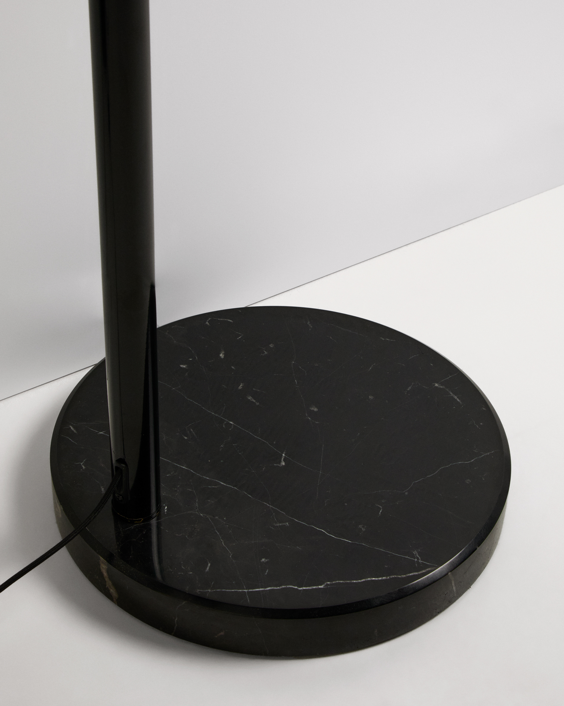 • Acél állólámpa fényes fekete festéssel és fekete márvány talppal.