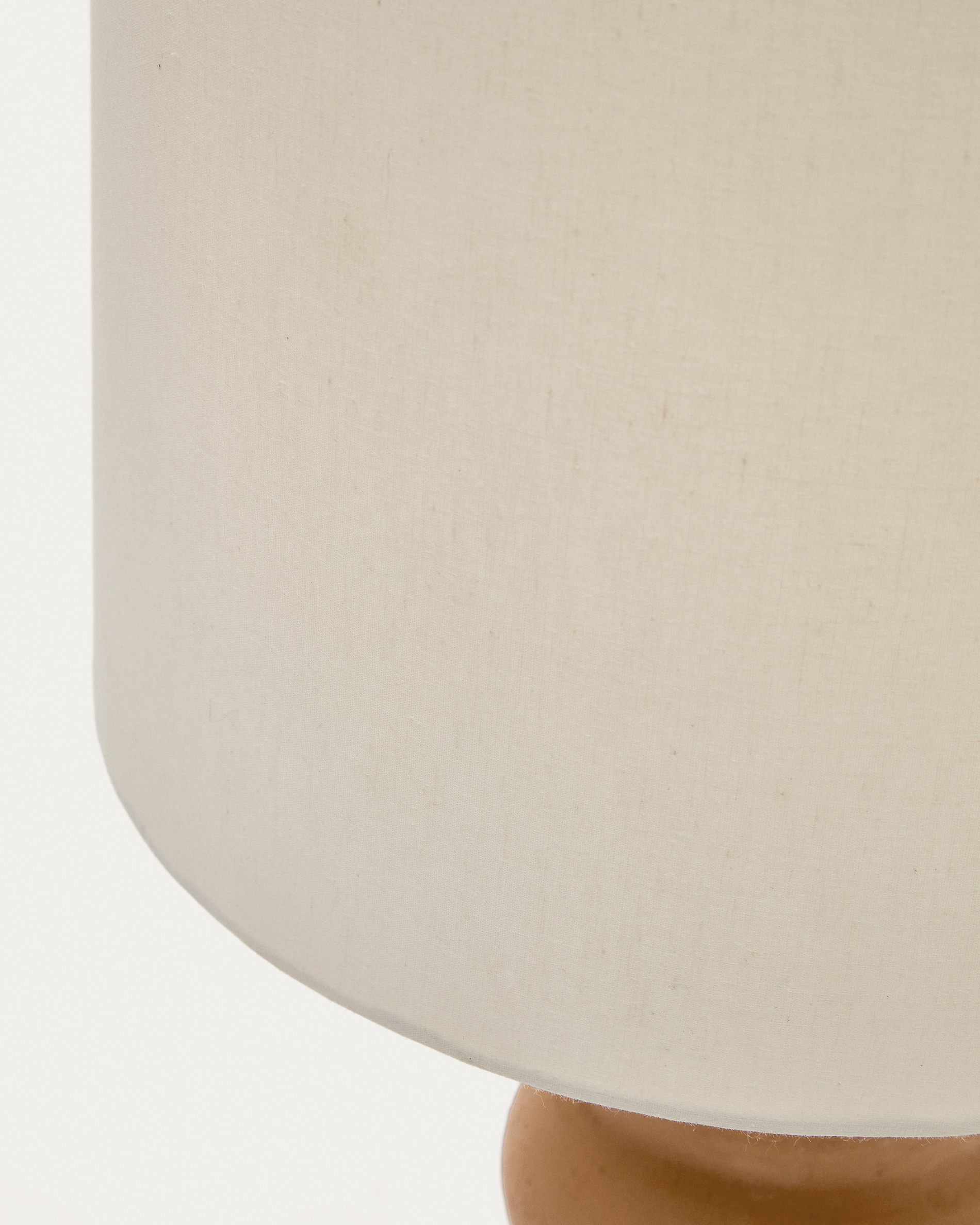 • Terrakotta anyagból készült asztali lámpa fehér szövet árnyékkal.