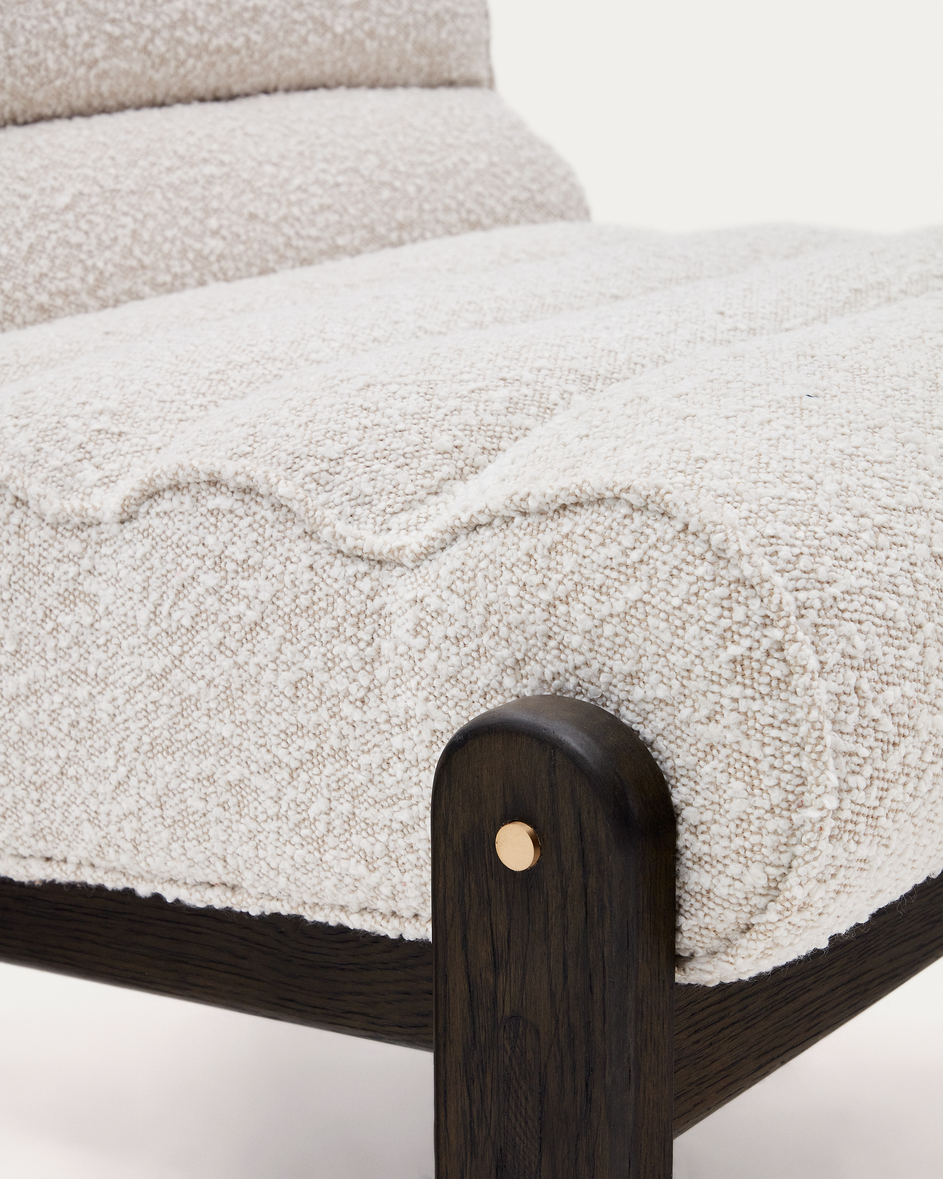 Magira karosszék fehér bouclé és tömör tölgyfa sötét felülettel