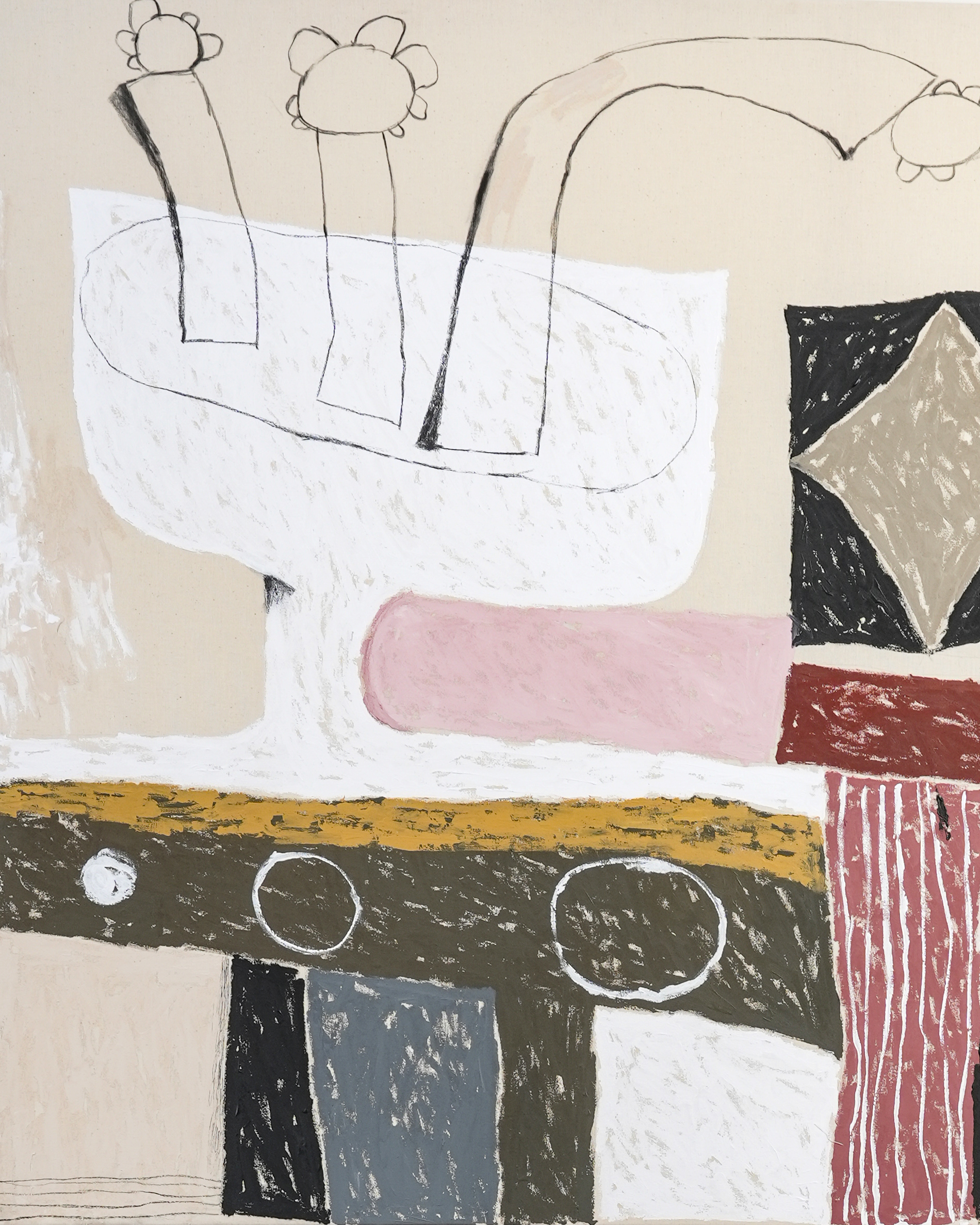 Kenjiro presents a series of paintings designed for contemplation. Each work explores the architecture of symbols and the interplay of shapes that reconstruct an instant: the small details of Menorca and Barcelona that fill a space with tranquillity and memory.