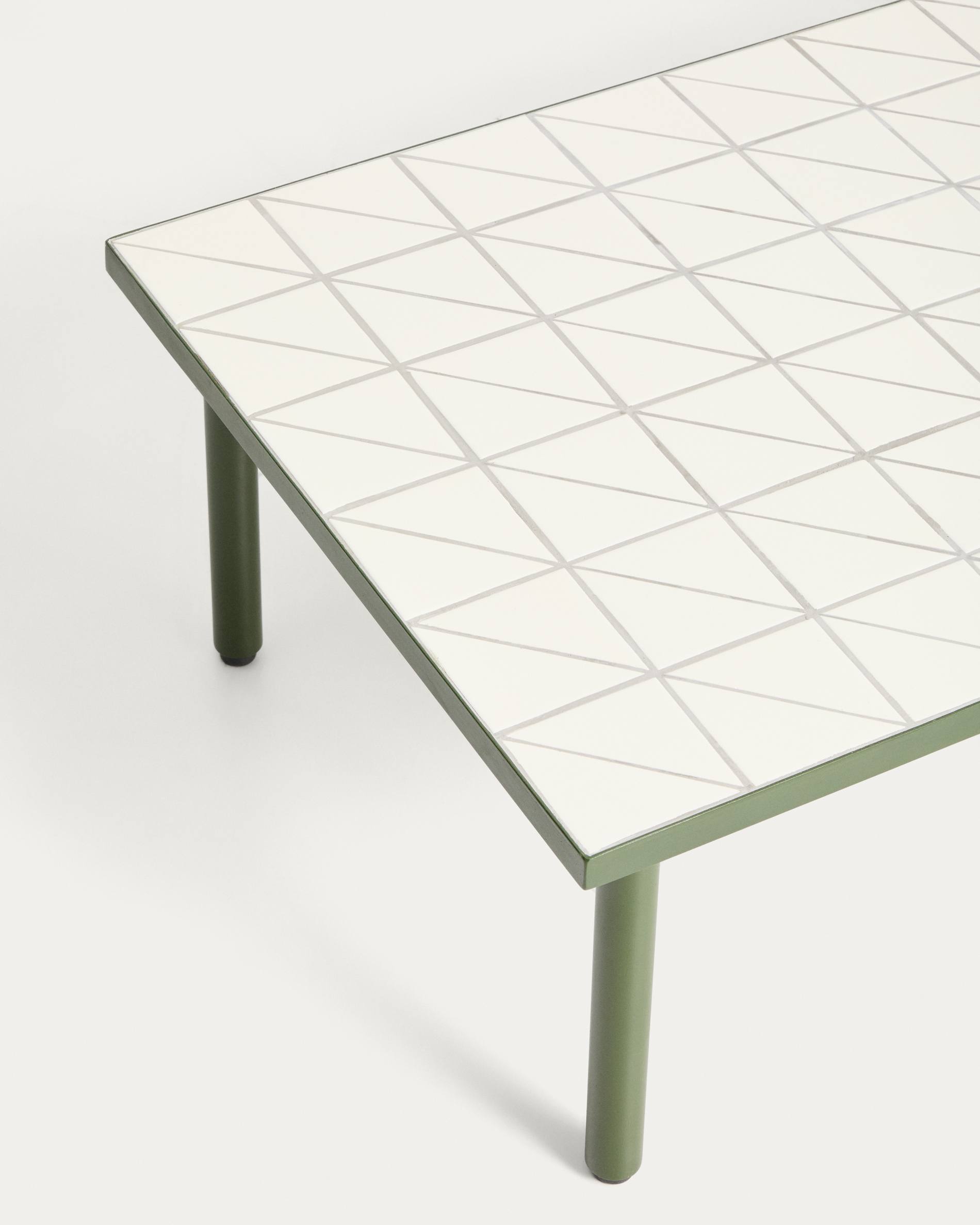 Maurina dohányzóasztal zöld galvanizált acélból, ecru csempével, 122 x 61cm