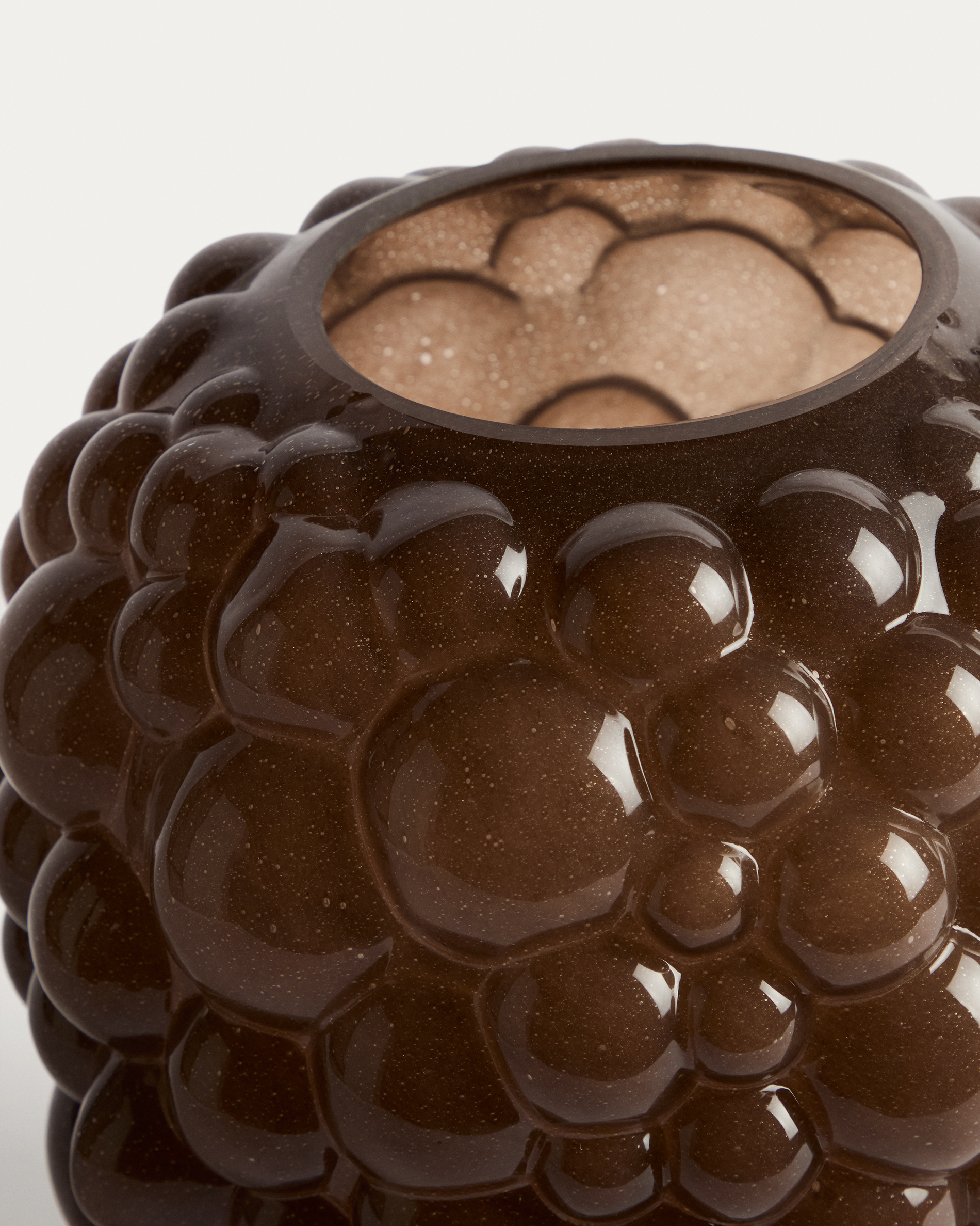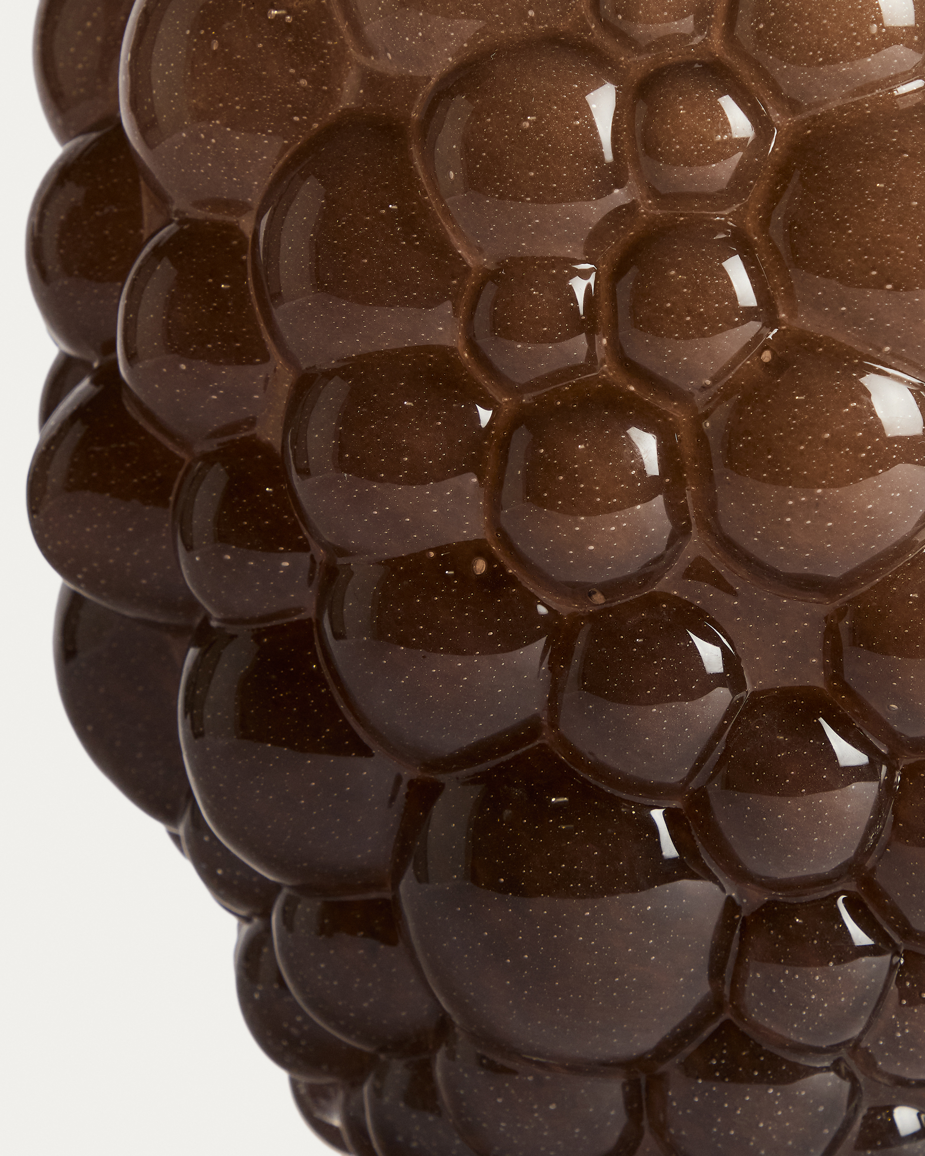 A Mure váza kiemelkedik kerek reliefjeivel, amelyek szoborszerű hatást keltenek. Dekoratív darab, amely jelenléttel és textúrával gazdagítja a környezetet, karaktert adva a térnek. Tömeg színezett üvegből készült, egy technika, amely a színt közvetlenül az anyagba építi, egységes és tartós árnyalatot érve el.