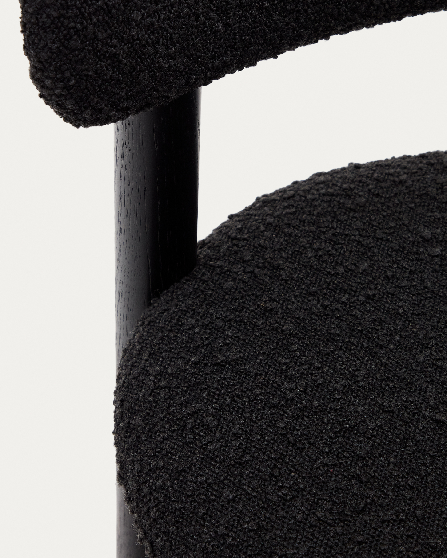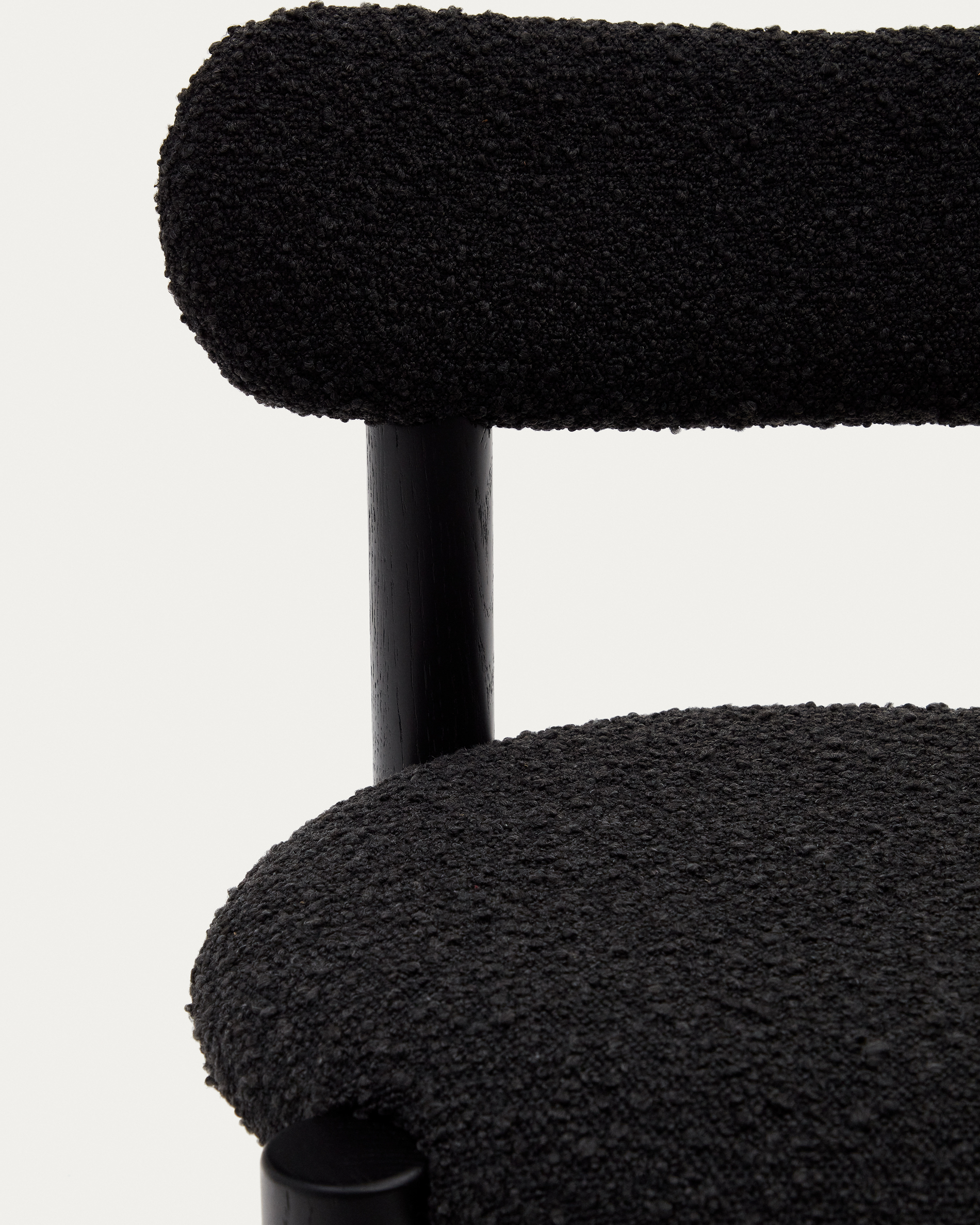 Nebai szék fekete bouclé és tömör tölgyfa szerkezettel, fekete felülettel