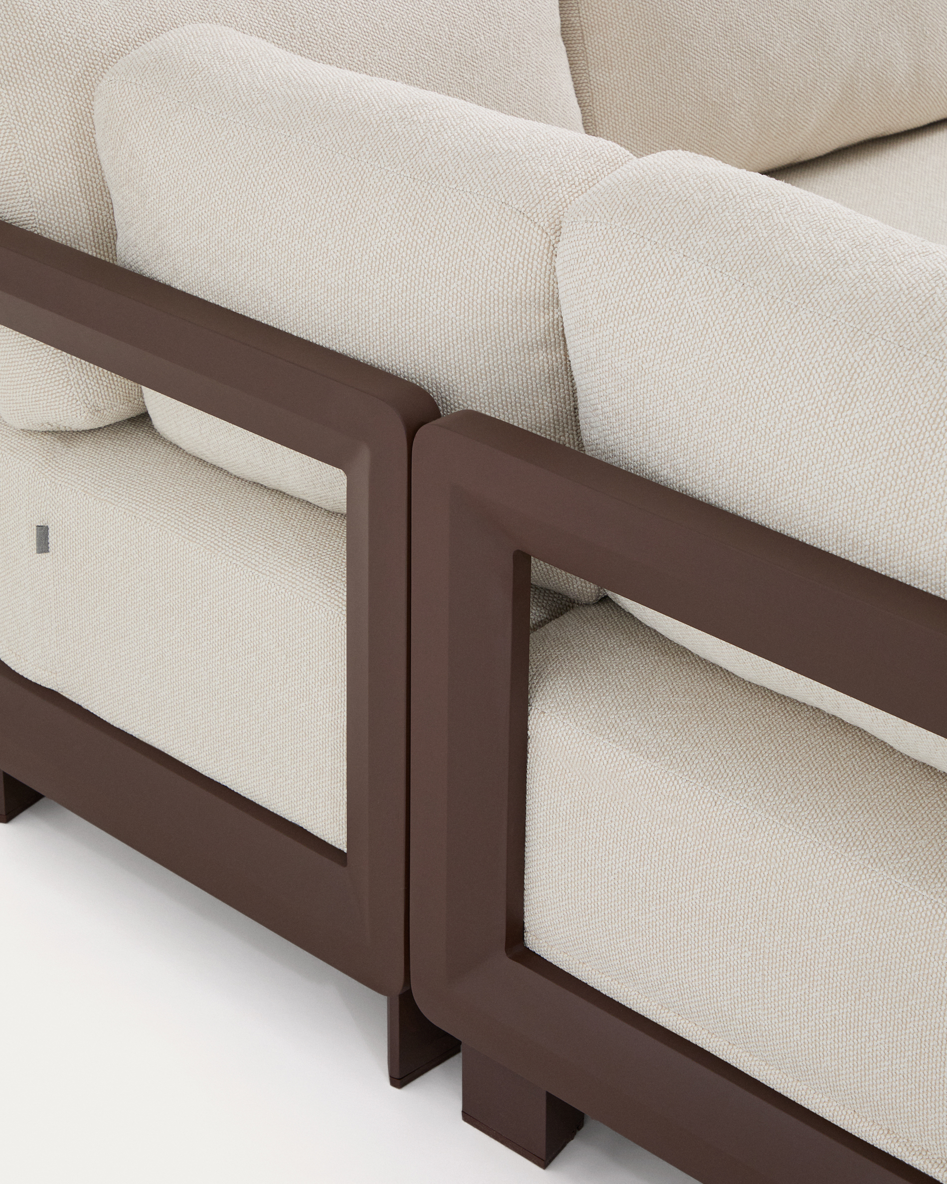 Nerano szett 5-üléses sarokkanapéval, karfás székkel és kávéasztallal edzett üveg és barna alumínium anyagból
