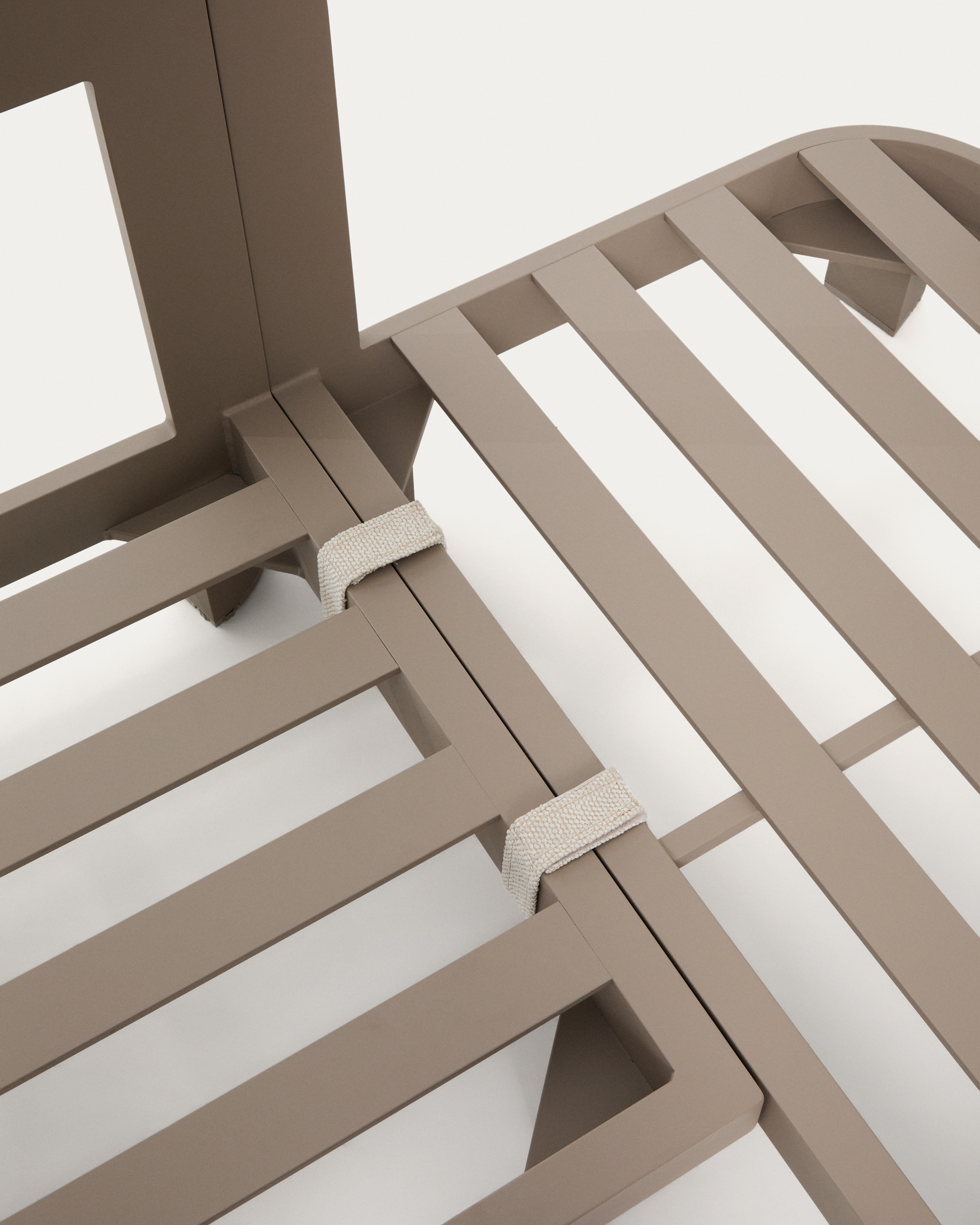 Nerano szett 5-üléses sarokkanapéval, karfás székkel és kávéasztallal edzett üveg és taupe alumínium anyagból