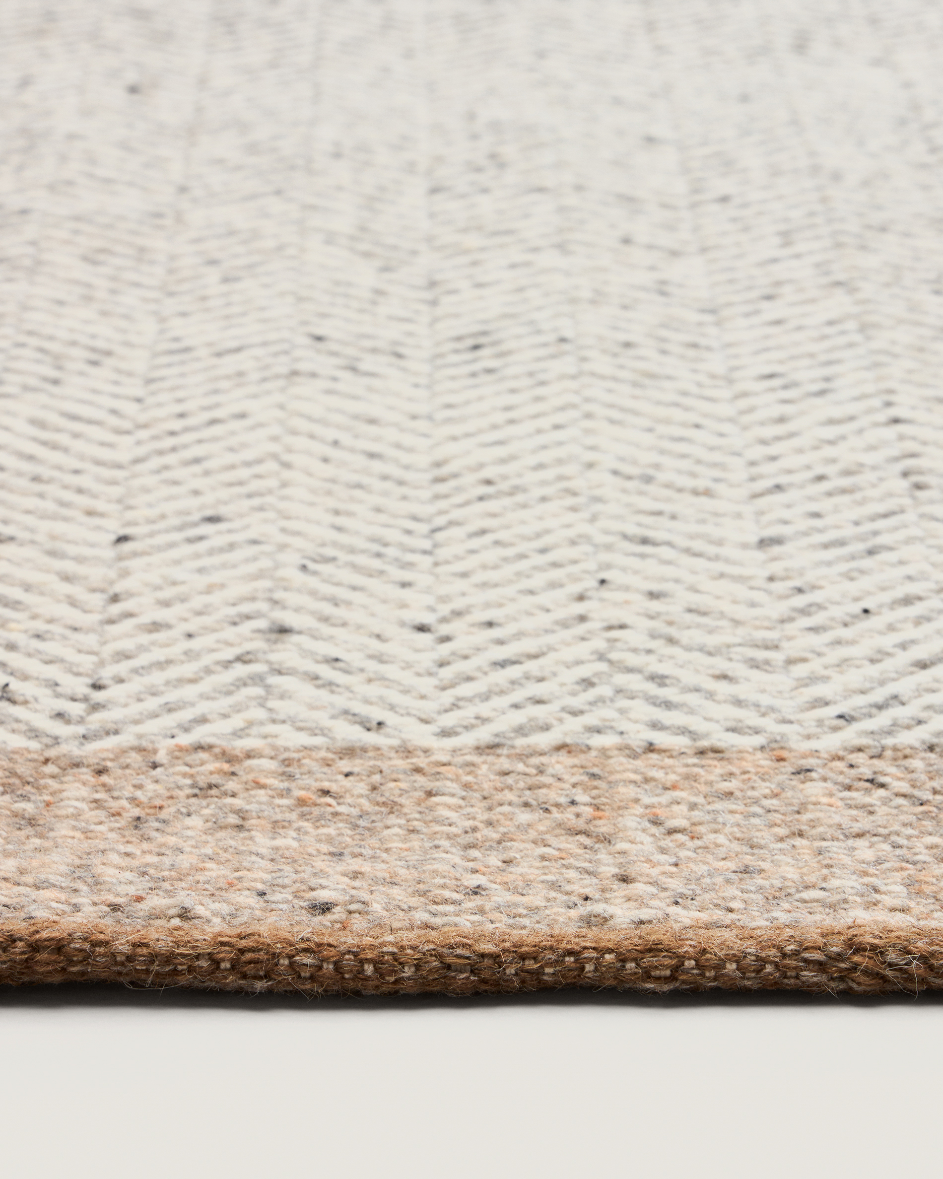 • Bézs gyapjú futószőnyeg halszálka jacquard mintázattal.