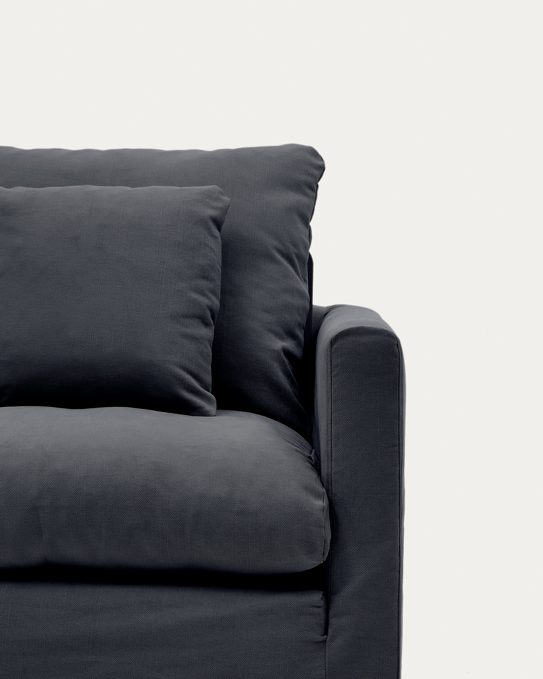 Nora karosszék levehető huzattal, len és pamut párnával, antracit szürke 92cm