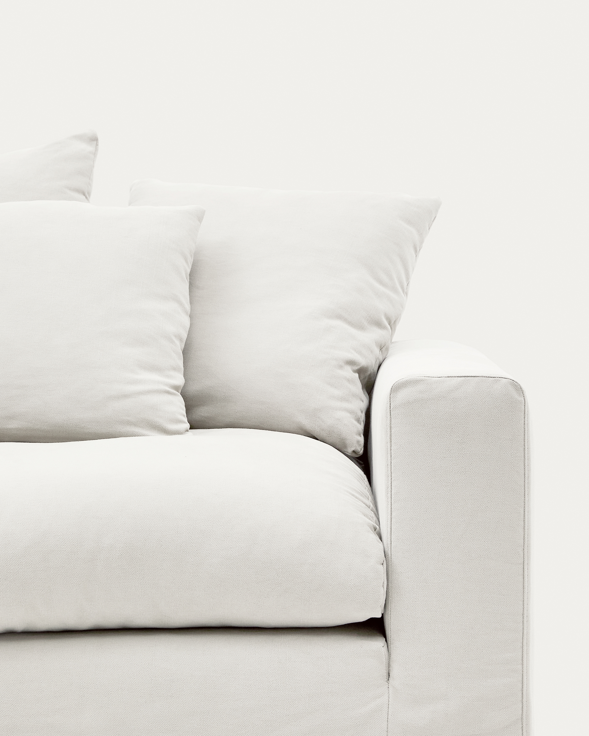 Nora 4-ülős kanapé levehető huzattal, len és pamut párnákkal, ecru 340cm