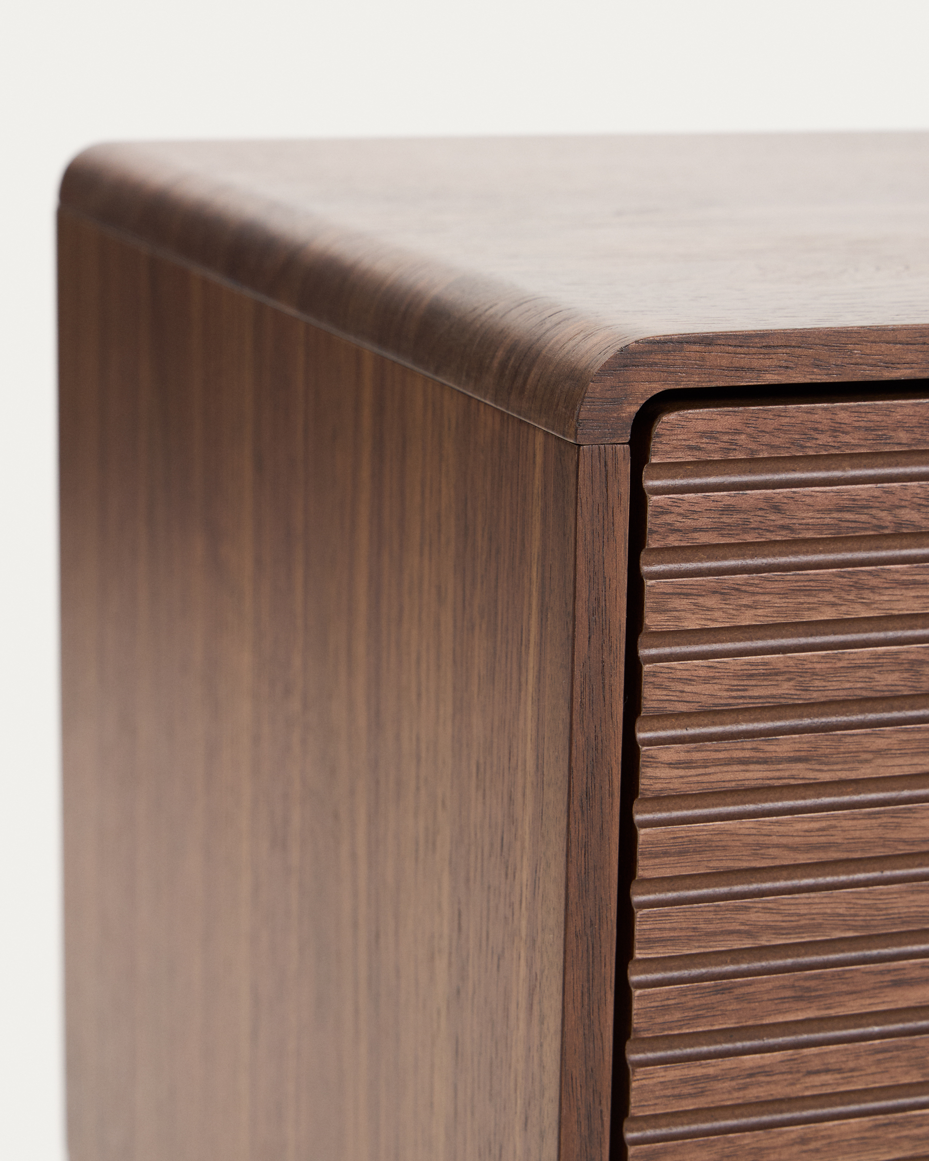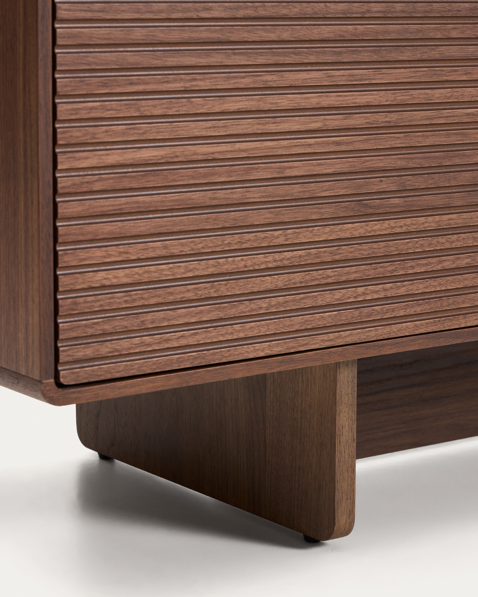 • 0,6 mm diófurnéros TV-szekrény, 4 ajtó soft-close zsanérokkal és állítható polcokkal.