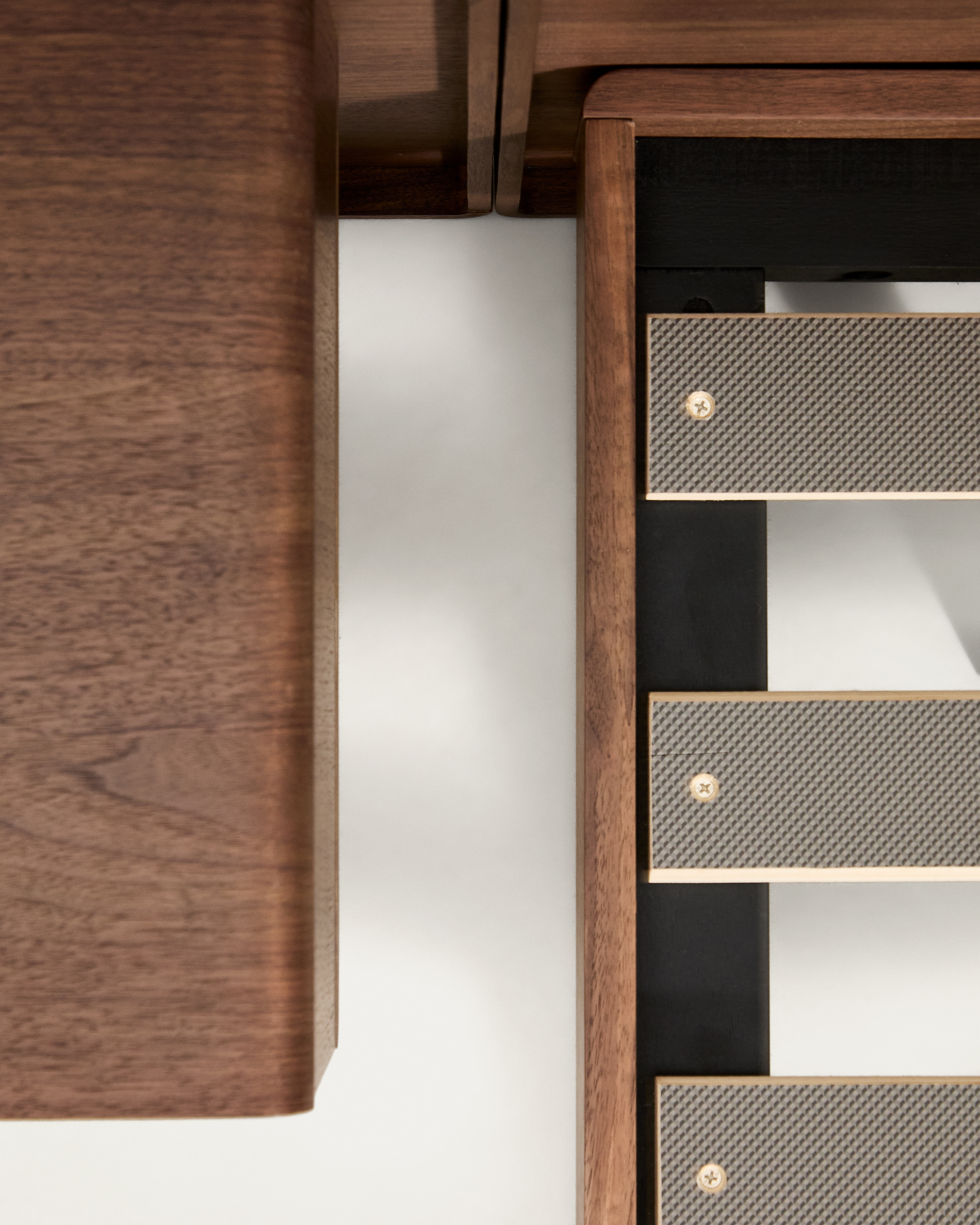 Fő anyag: 38% MDF (közepes sűrűségű farostlemez), 37% rétegelt lemez, 23% nyírfa (Betula costata), 1% bükkfa (Fagus sylvatica), 1% dió furnér (Juglans nigra)